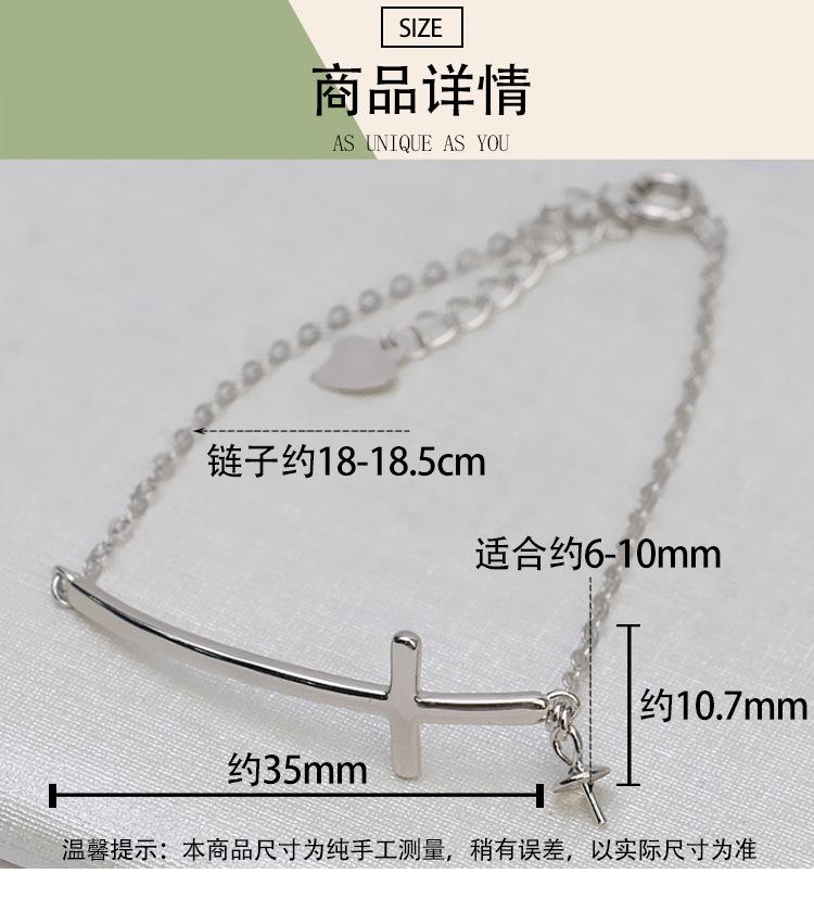 A pulseira, incluindo a corrente de extensão e fecho, tem cerca de 18-18,5 cm de comprimento. A cruz tem cerca de 10,7 mm de largura e 35 mm de comprimento. A corrente de extensão tem 2,5-3 cm de comprimento e é adequada para contas redondas de 6-10 mm.
