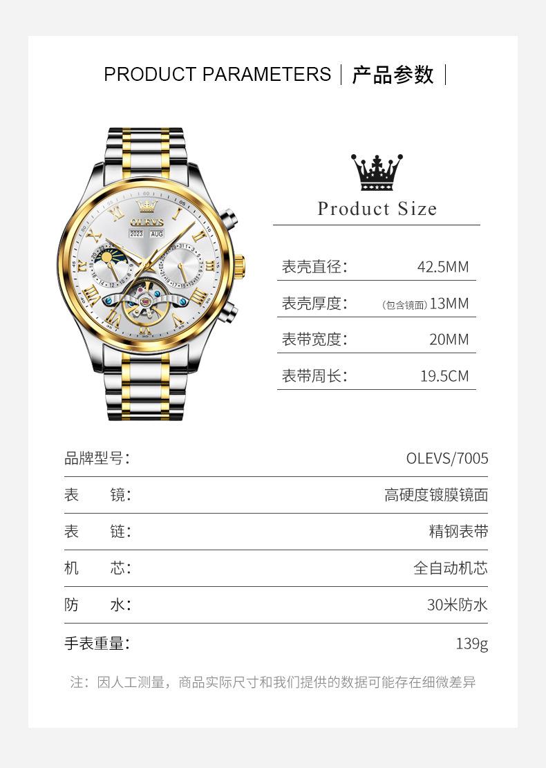 [Movimiento]: Movimiento mecánico completamente automático original, mejor calidad, cronometraje estable y preciso.