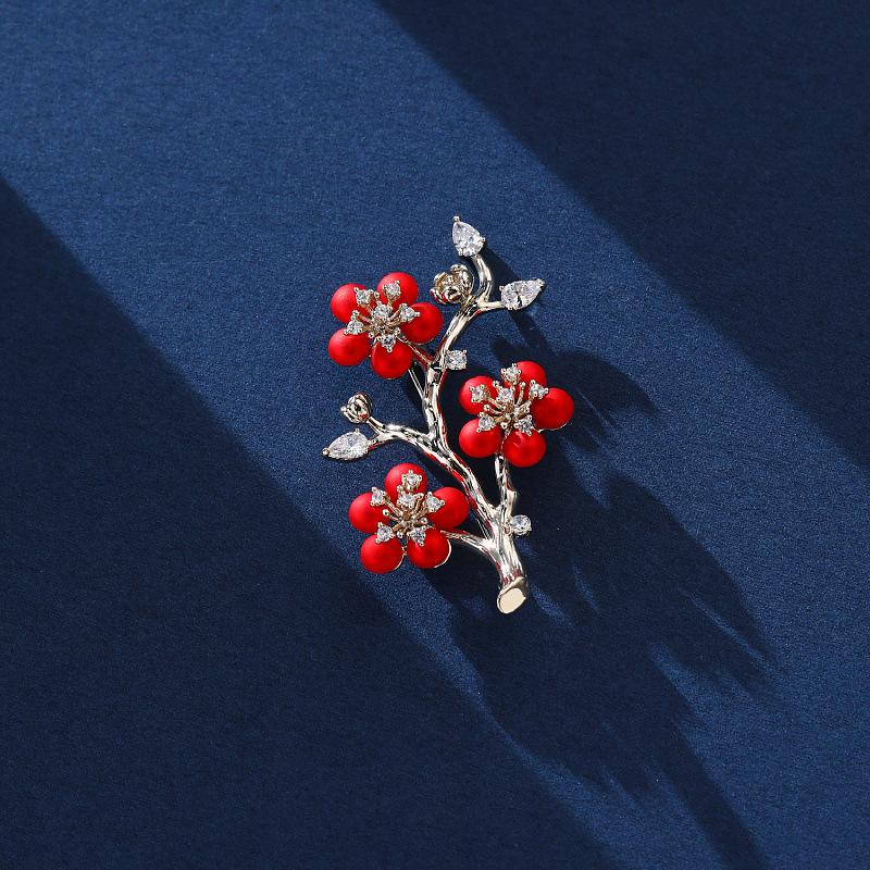 Compre Broche para Mulheres, Estilo Coreano e Japonês, Estilo Chinês Retrô, Flor de Ameixeira Vermelha, Pin Floral da Moda, Novo Estilo, Broche para Jaqueta Cheongsam no atacado no Joom.pro