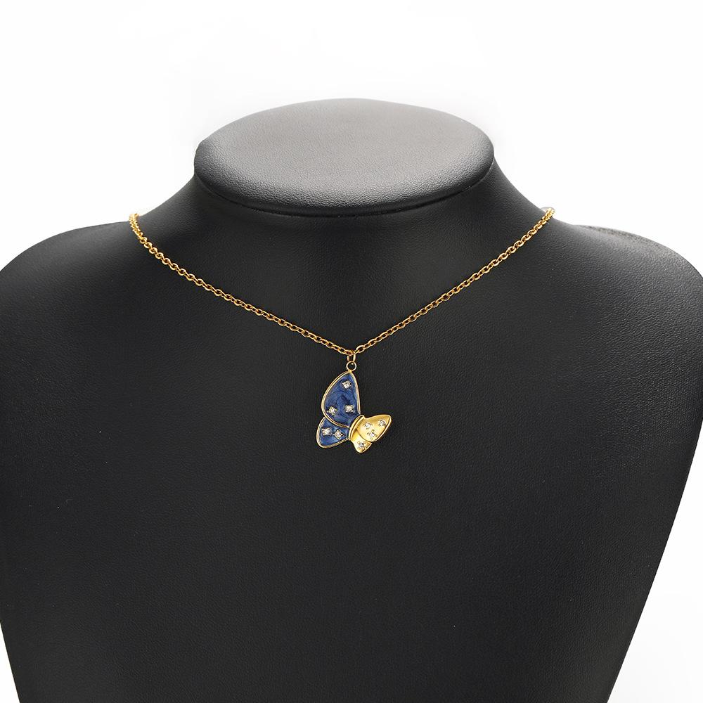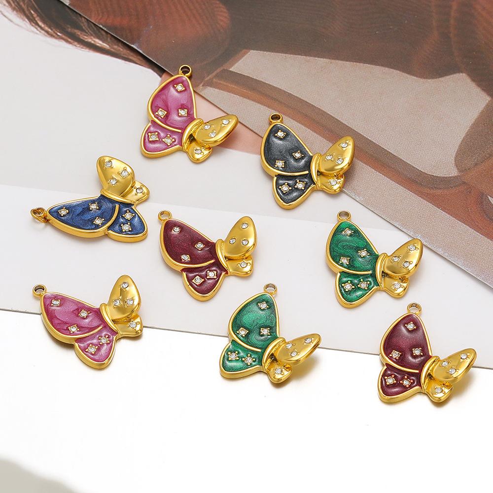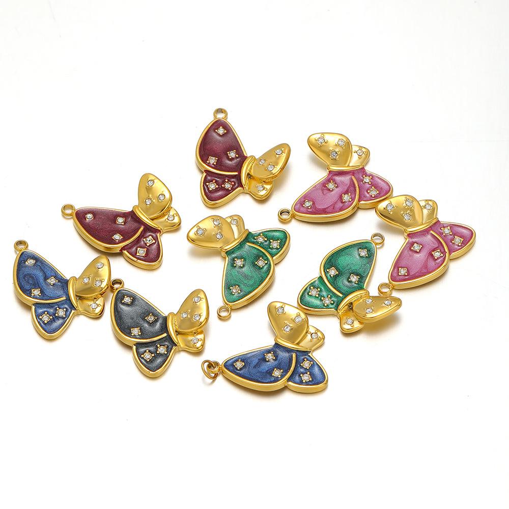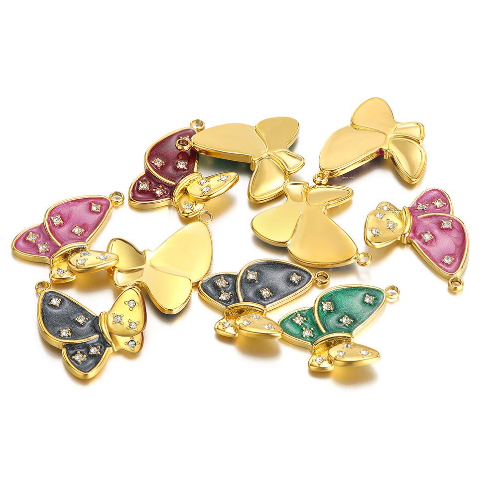 [Nome] Pingente de borboleta de diamante com gota de óleo de um lado