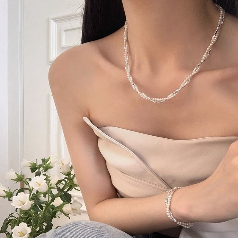Compre Colar de pérolas de prata quebradas, colar com enrolamento duplo, entrada luxuosa, corrente de clavícula, elegante, pulseira cibernética de celebridade no atacado no Joom.pro