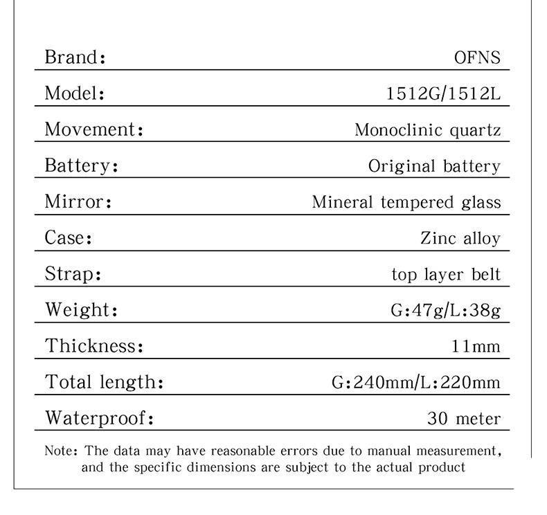 1. Todos os produtos desta loja são embalados em sacos plásticos transparentes e marcados com o mesmo preço.Sem caixa de relógio, um conjunto completo de caixas de embalagem pode ser comprado diretamente no site
