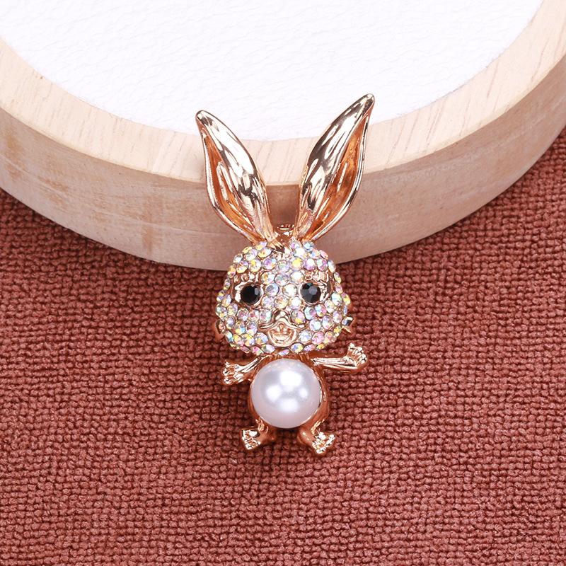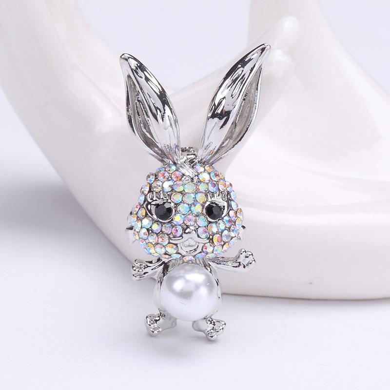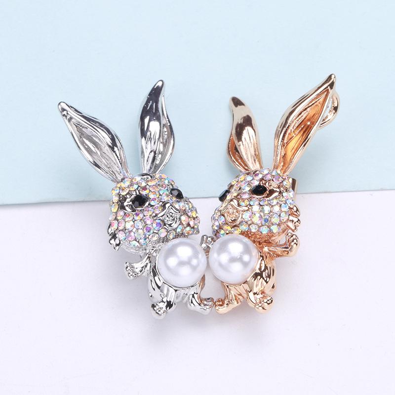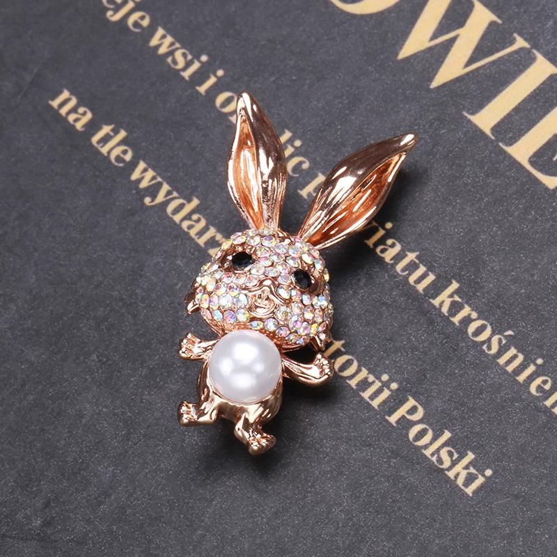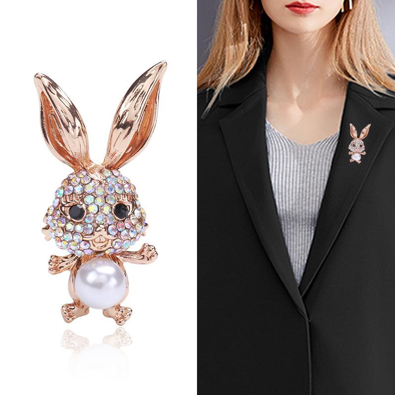 Compre Moda coreana novo bonito coelho broche liga Diamante animal corpete todos-combinar casaco camisa pin no atacado no Joom.pro