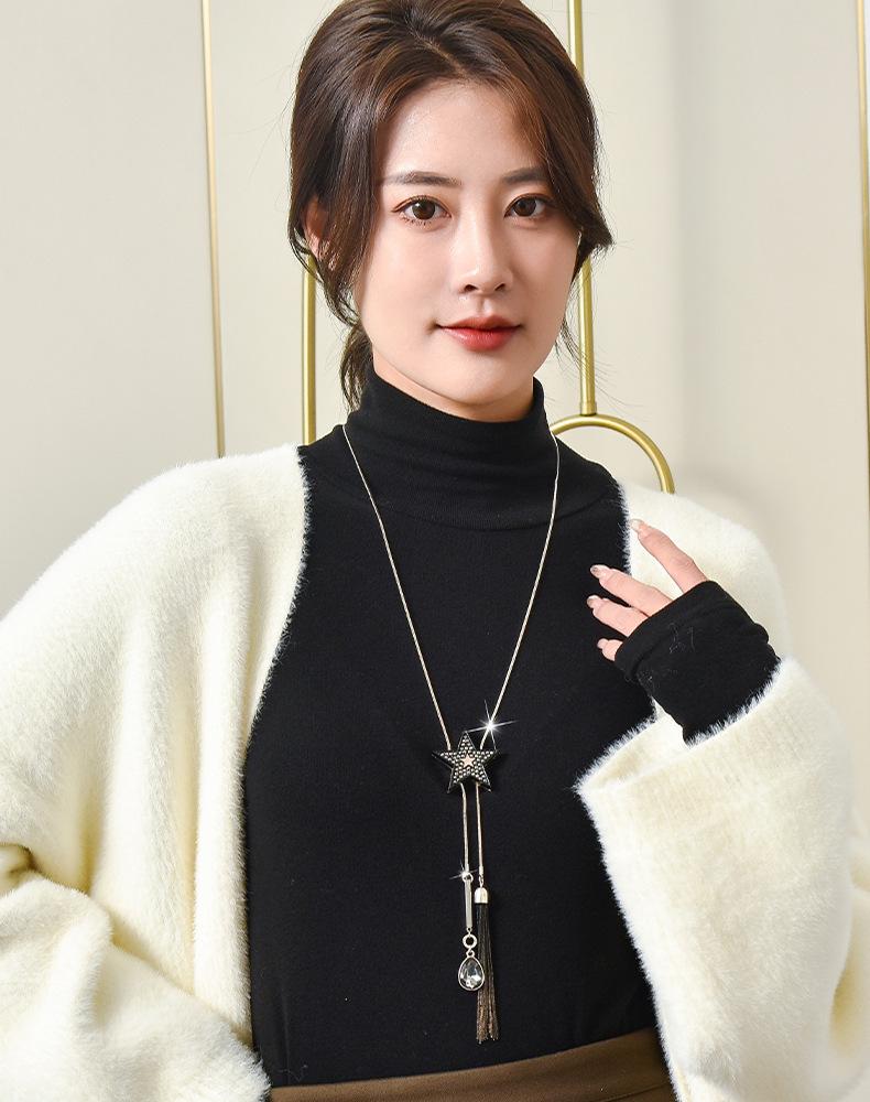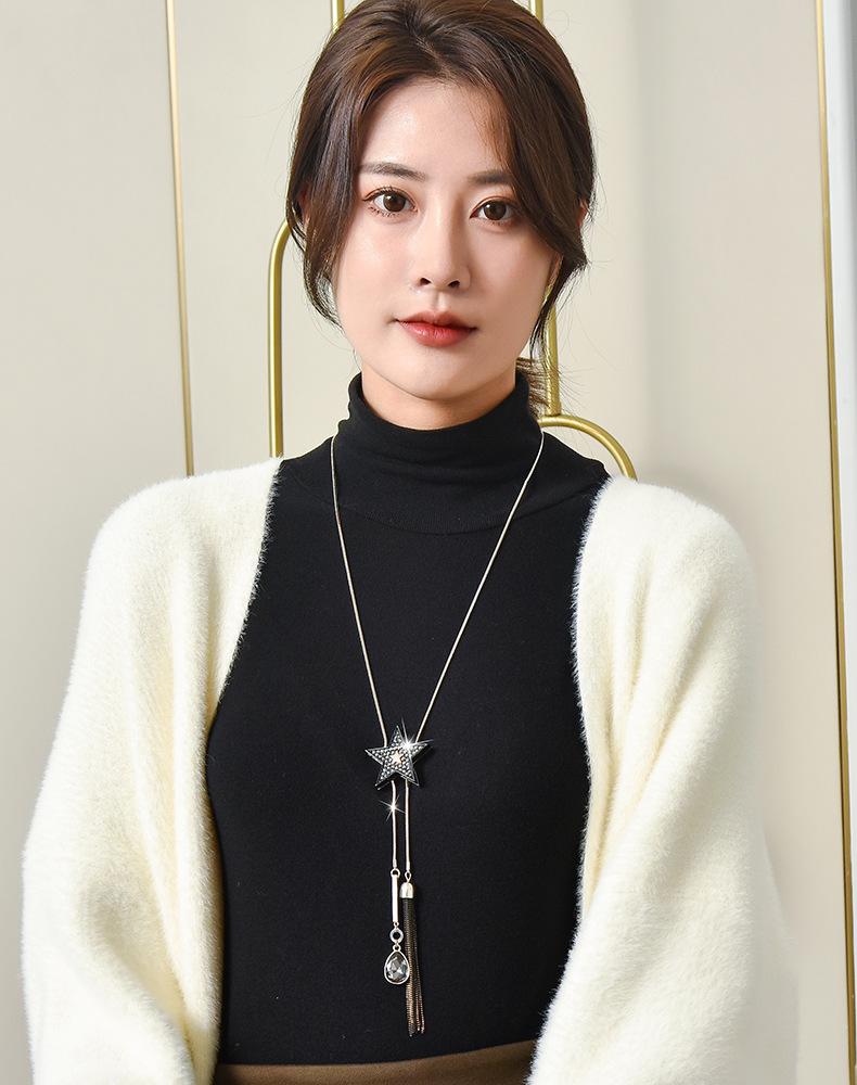Japonês e coreano versátil camisola corrente feminina colar longo moda pingente acessórios pérola borla pingente jóias atacado