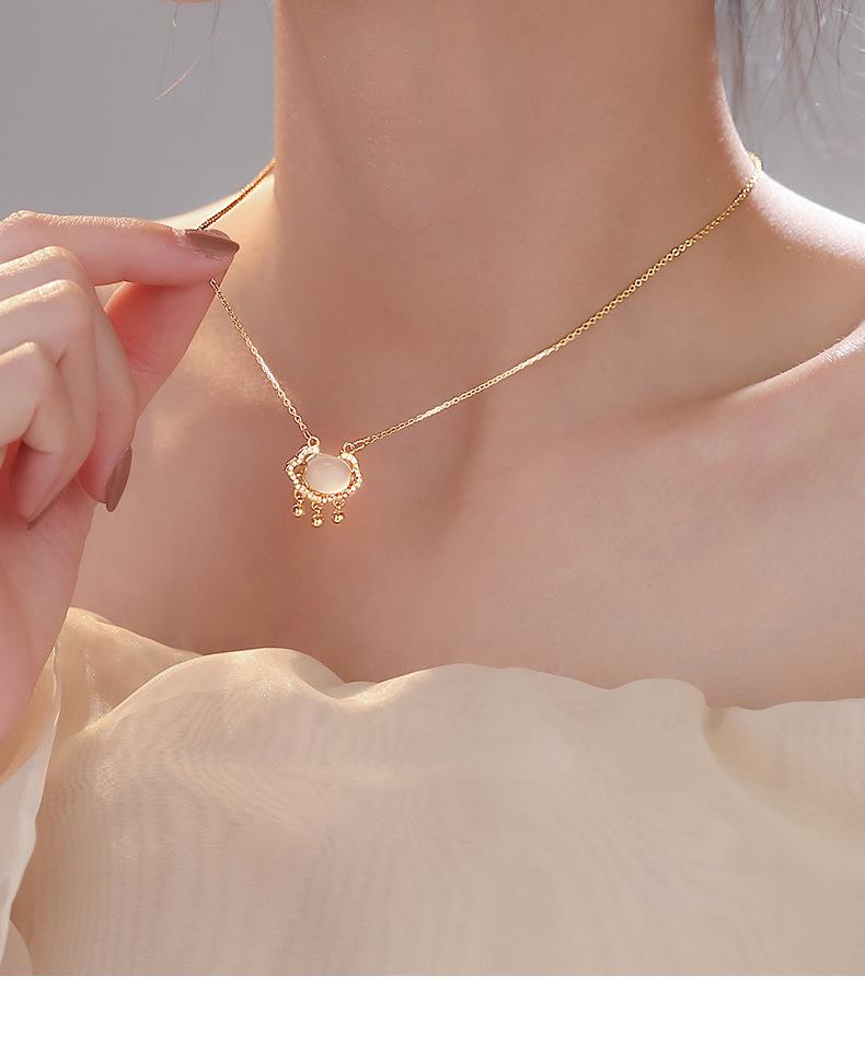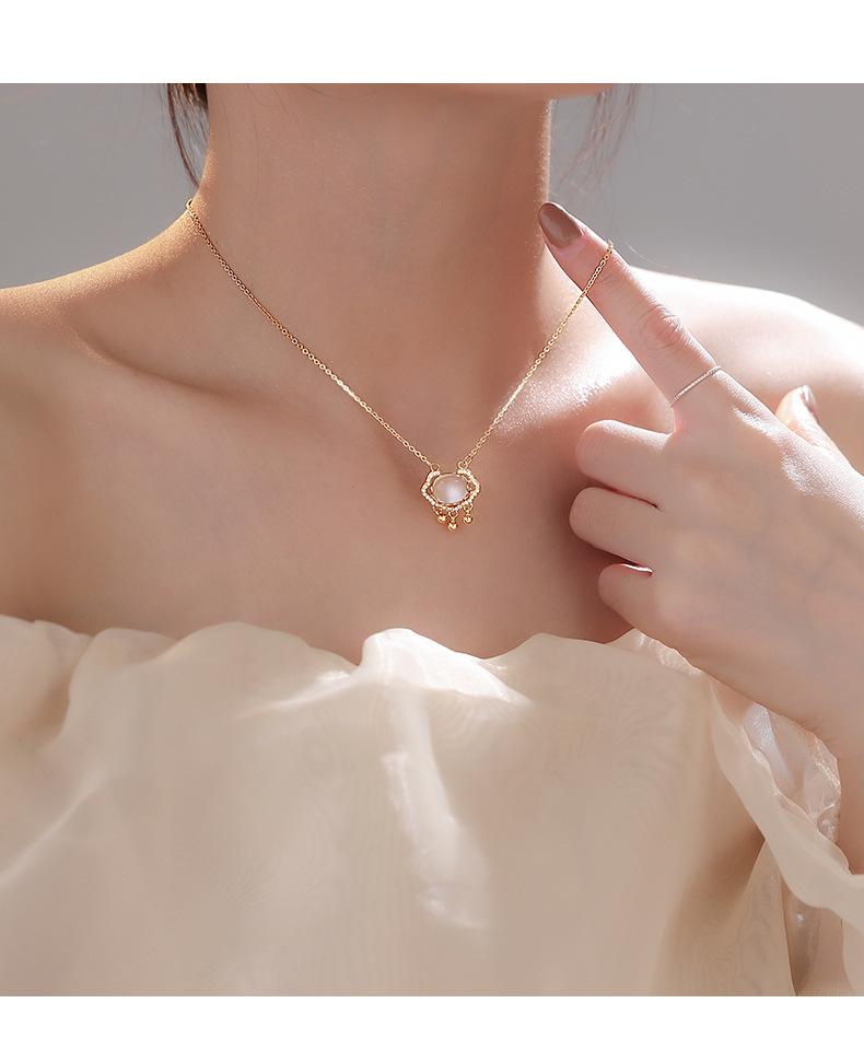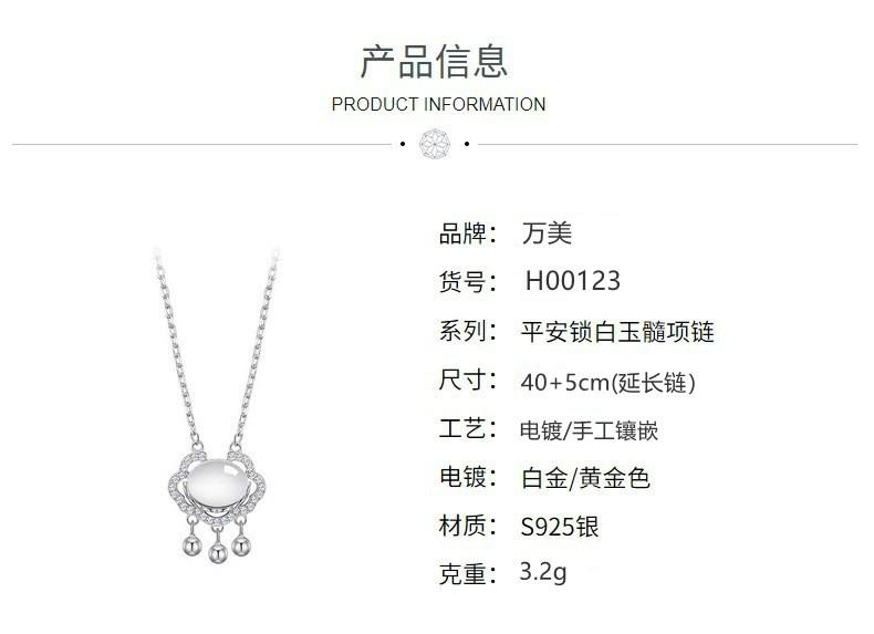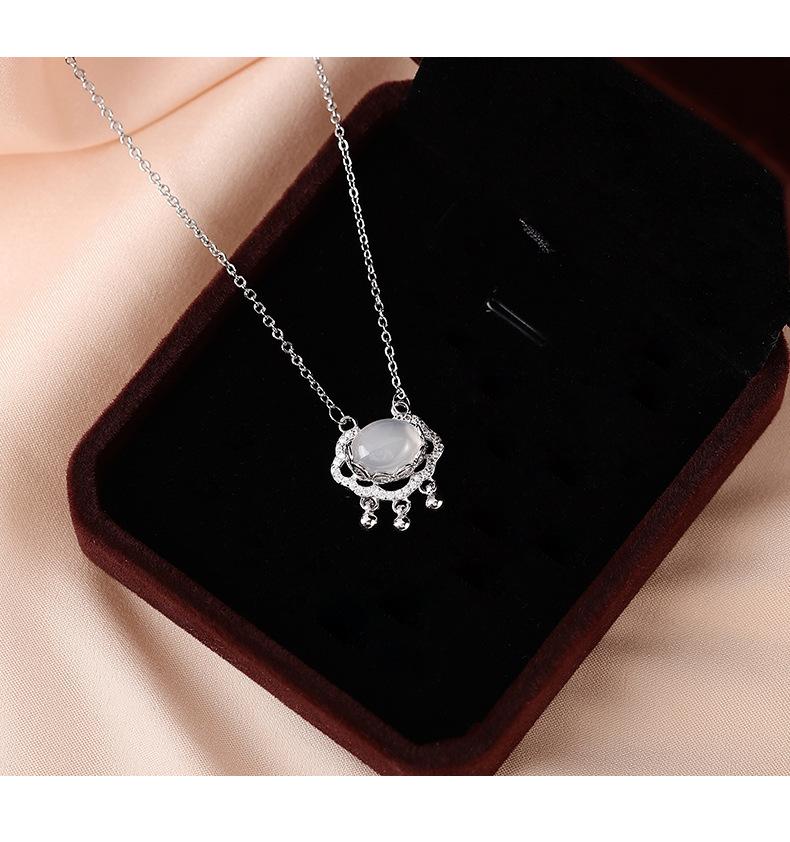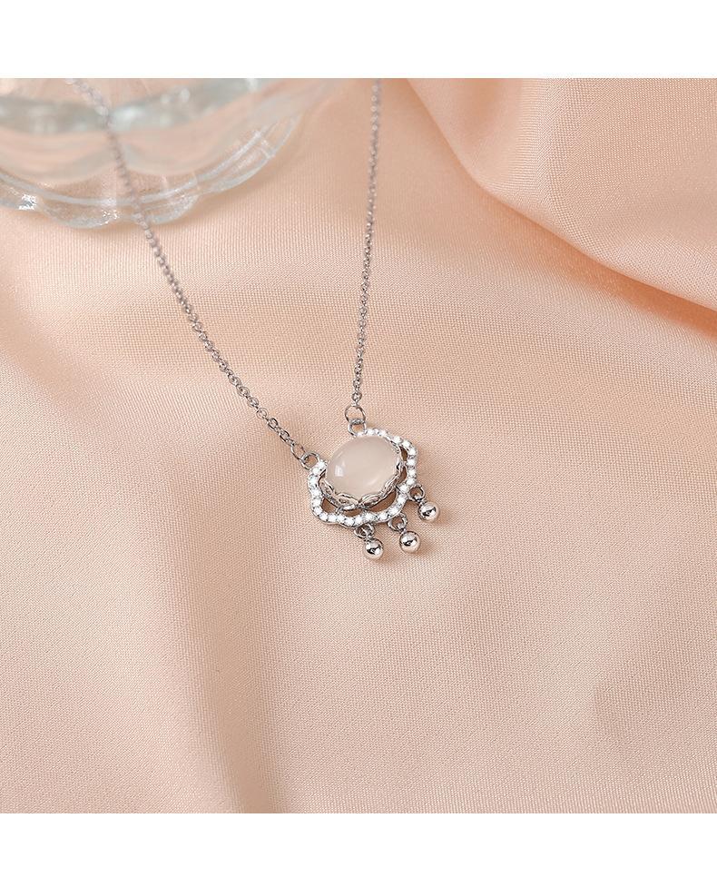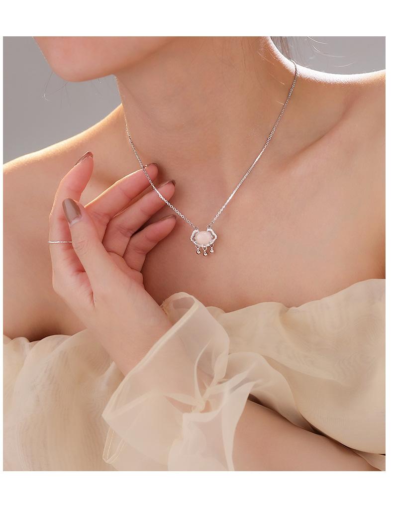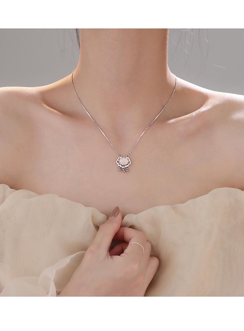 s925 prata esterlina paz cadeado colar luz luxo nicho Ruyi longevidade cadeado calcedônia branca vibrato mesmo novo pingente feminino