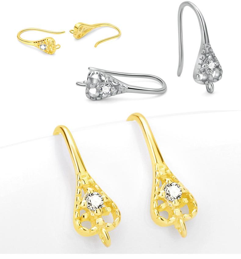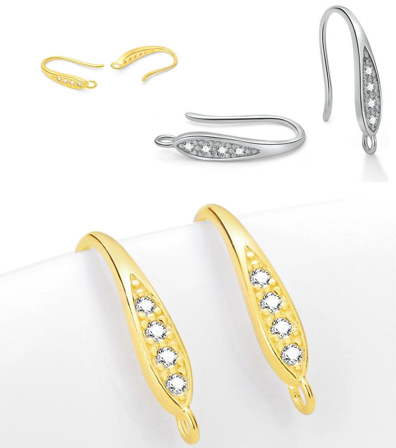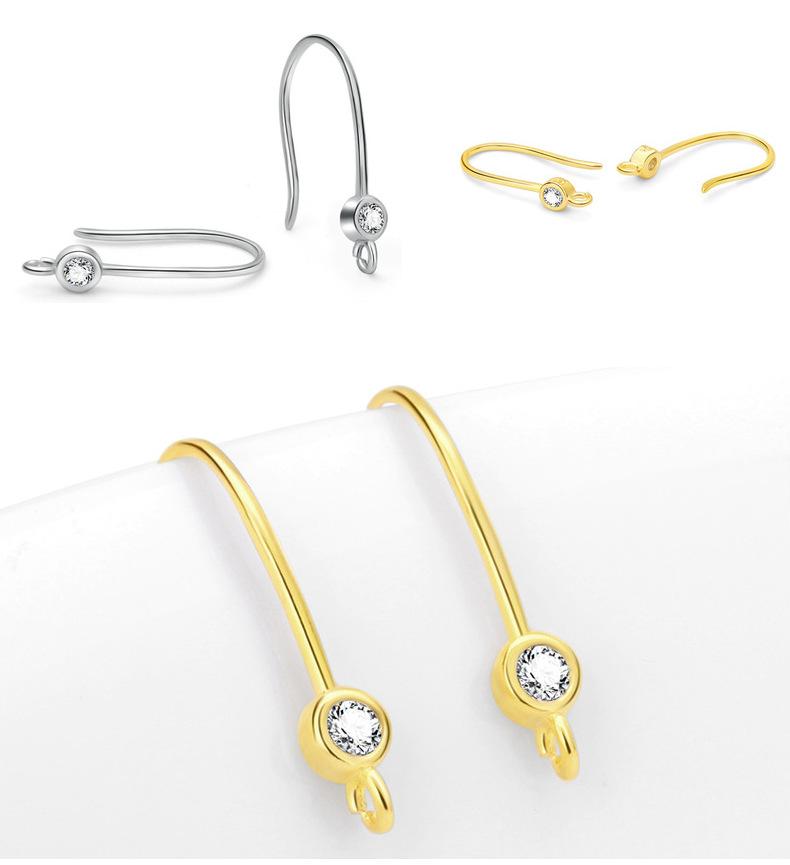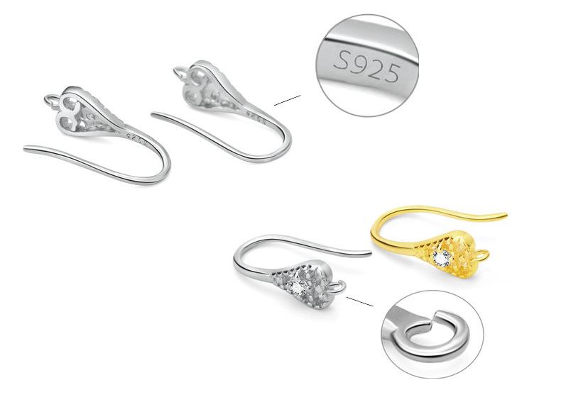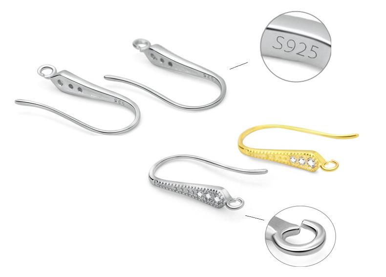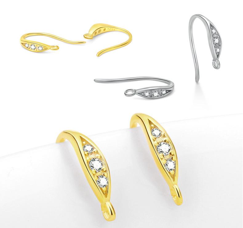 Pendientes de plata de ley S925 con ganchos de diamante, joyería chapada en oro, accesorios de bricolaje hechos a mano, venta directa de fábrica al por mayor
