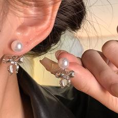 | |  | Aretes de lazo de perlas con aguja de plata S925 para mujer, estilo frío, combinables, nicho, personalidad, temperamento, aretes nuevos | | | |