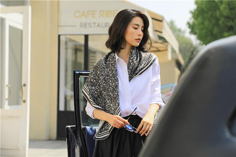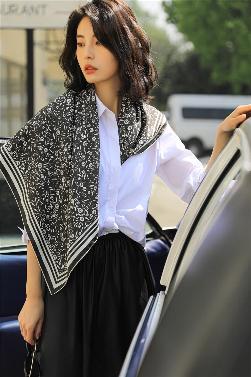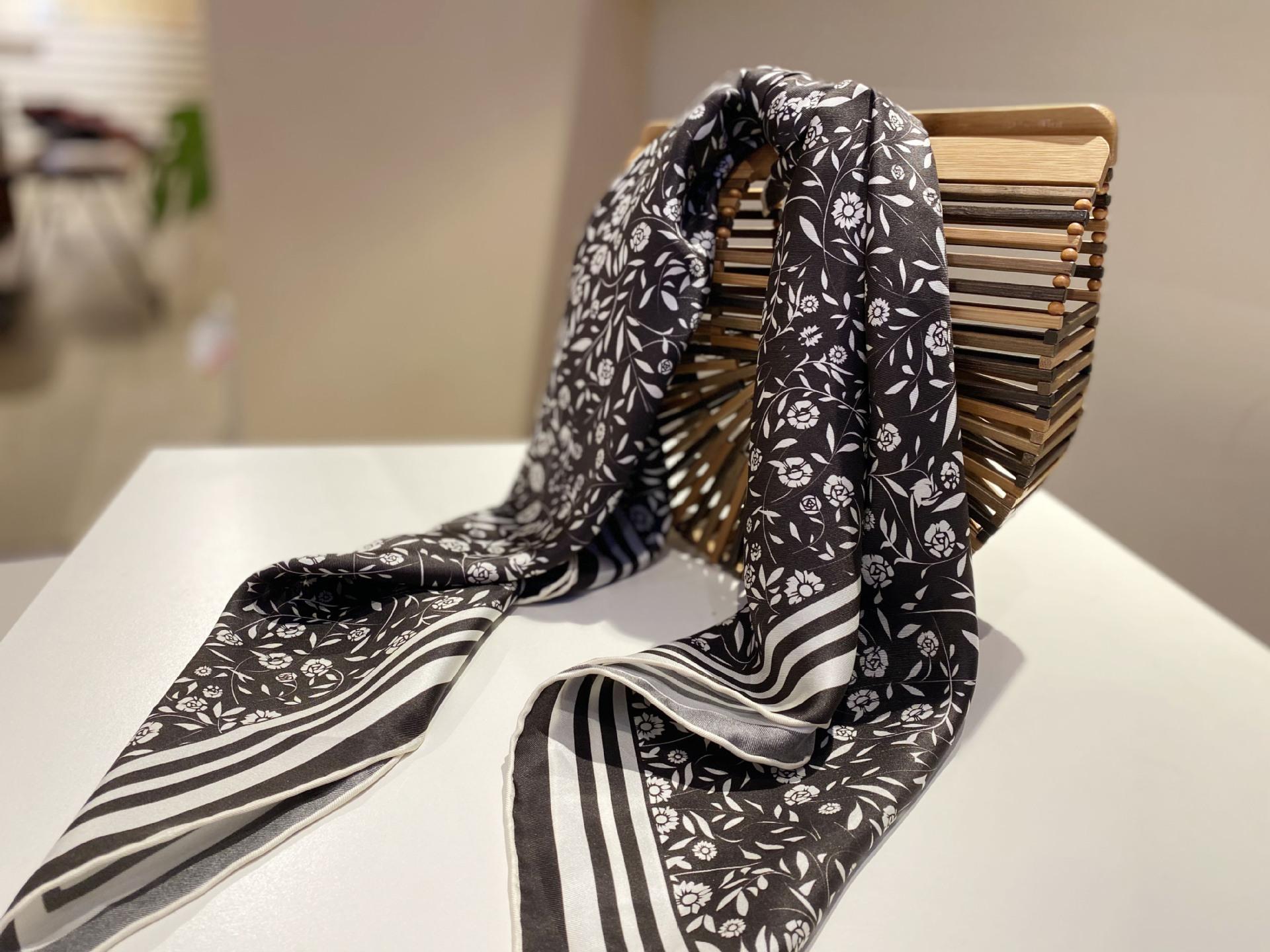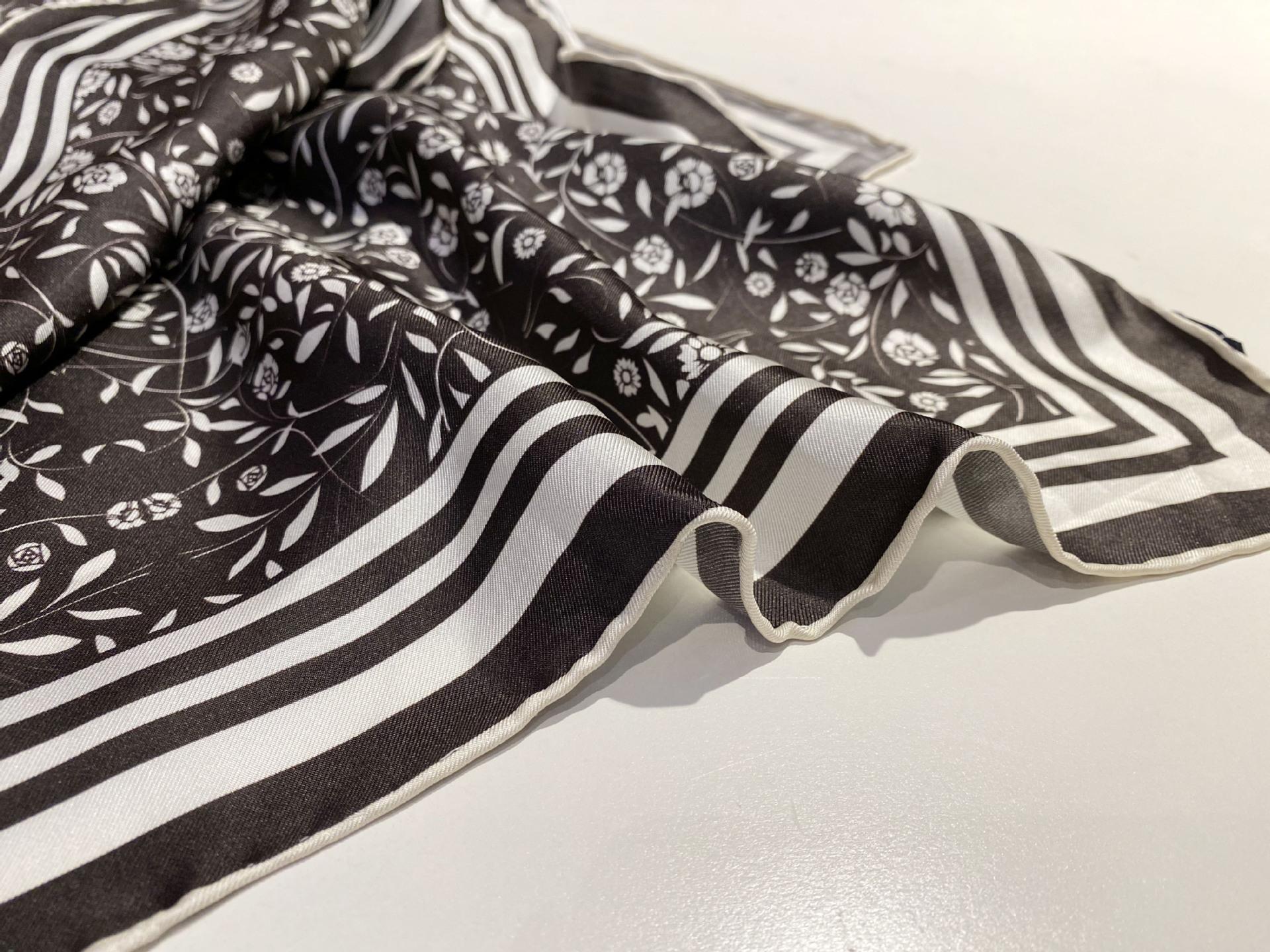 Tecido: 14 Momme Twill Silk Nome do produto: Lenço quadrado de seda floral pequeno