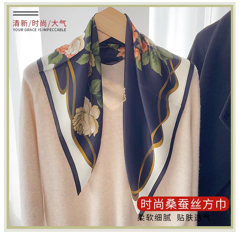 2025 Novo Estilo 65cm Presente Quadrado Mulheres Moda Lenço Decorativo de Seda Lenço Xale Quadrado de Seda Feminino