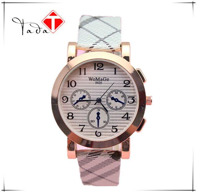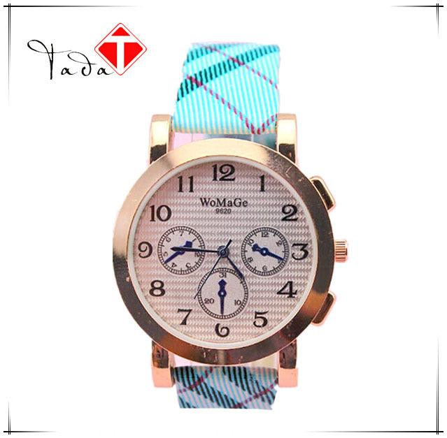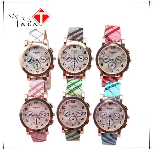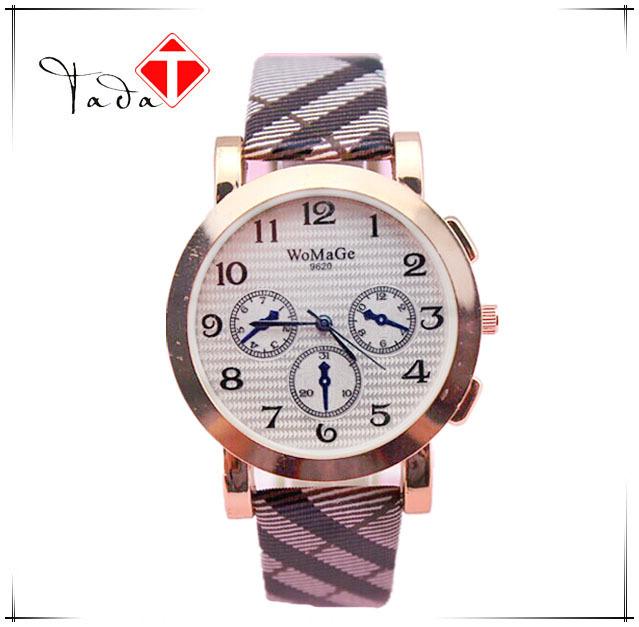 Comercio exterior súper ventas moda correa de cuero PU a rayas reloj para mujer