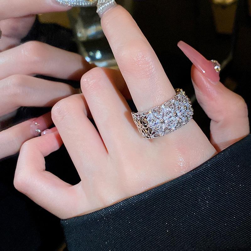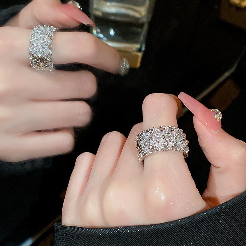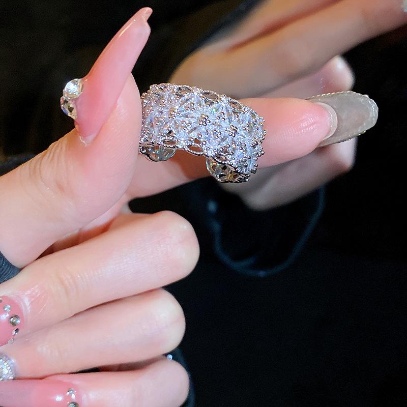 2024 estilo quente zircão geométrico anel aberto simples moda índice dedo anel temperamento luz luxo versátil mão jóias atacado mulheres
