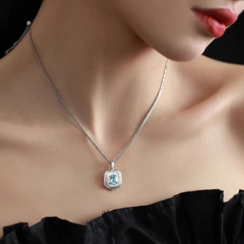 Retro retro retro heavy industry zircão quadrado pingente colar feminino requintado all-match nicho design de alta qualidade clavícula corrente