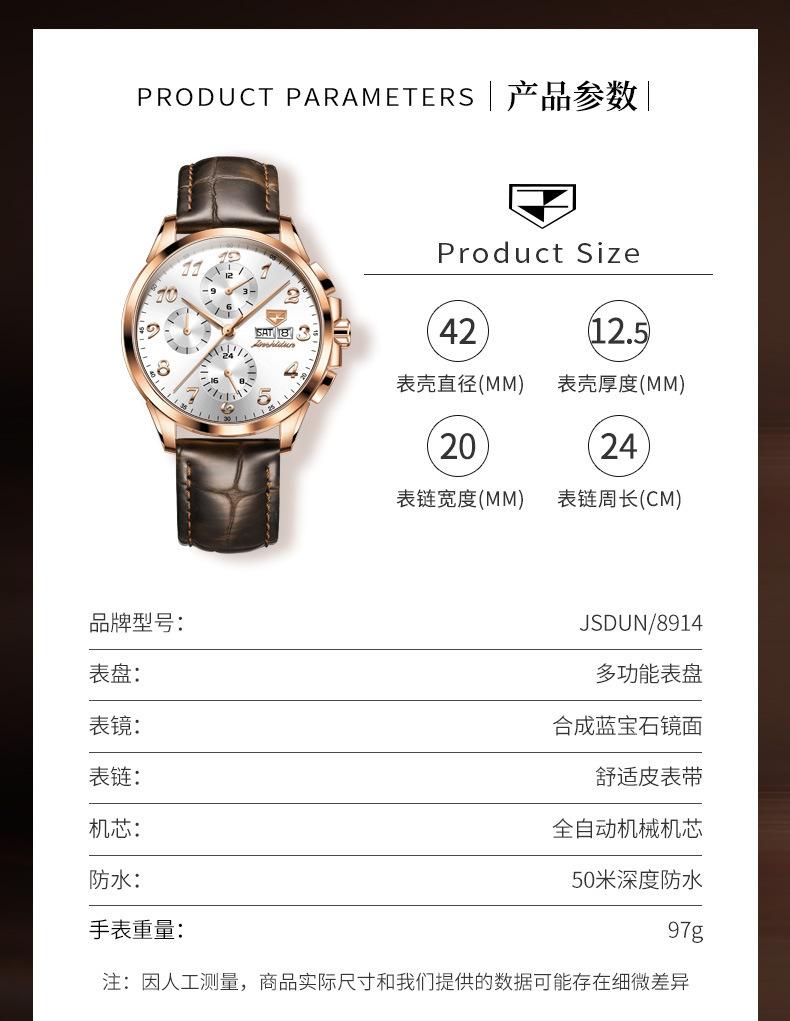 [Movimento]: Movimento mecânico totalmente automático original, melhor qualidade, cronometragem estável e precisa!