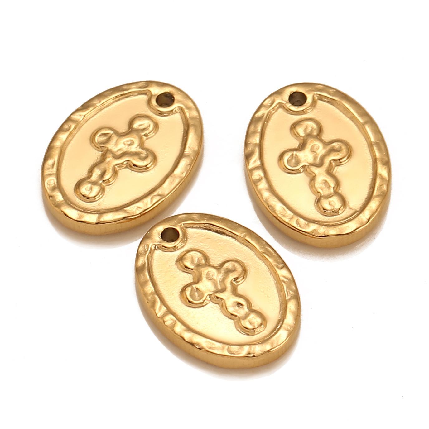 Fábrica de fornecimento direto transfronteiriço vendas diretas spot titânio aço inoxidável pingente de cruz redonda