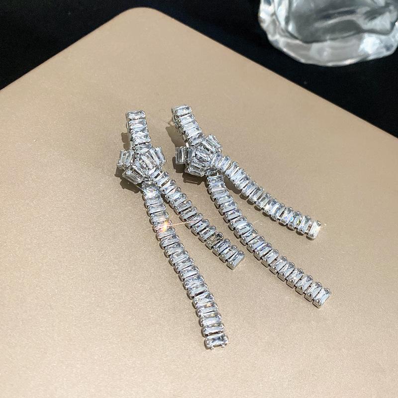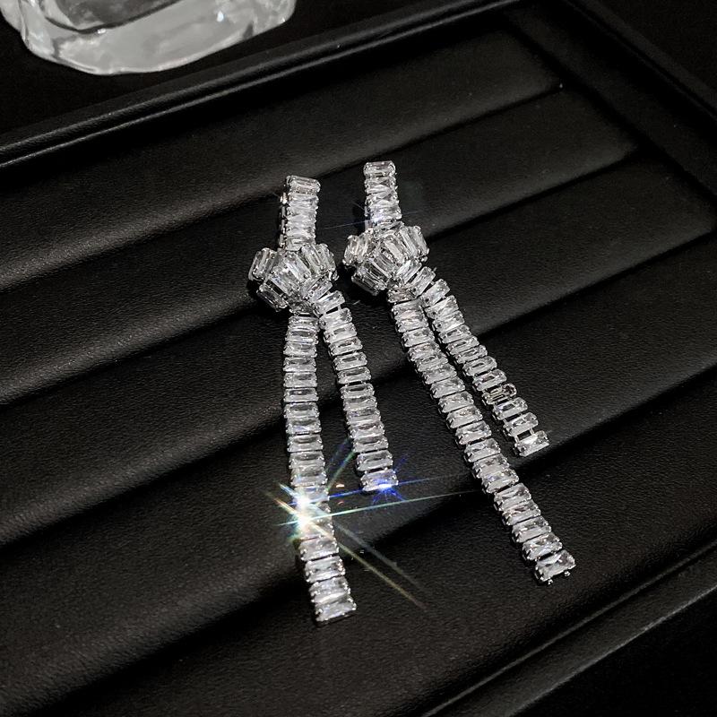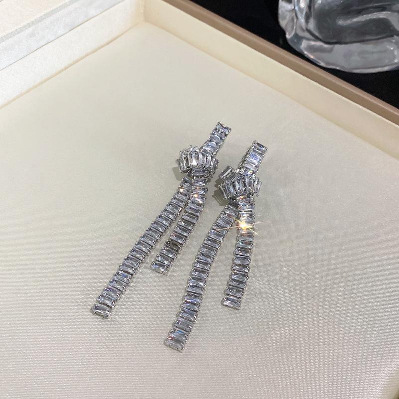 Pendientes largos con borlas de metal con incrustaciones de diamantes, populares en Europa y América, para mujer, pendientes de alta gama, temperamento de nicho, pendientes transfronterizos al por mayor