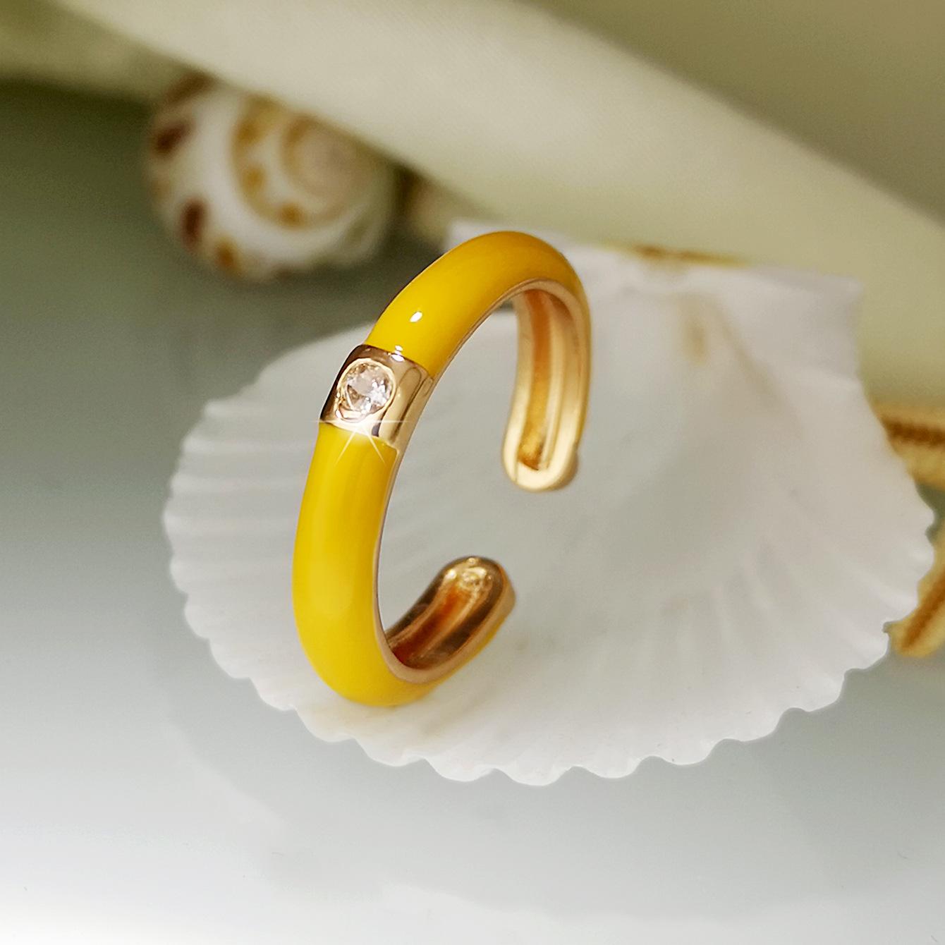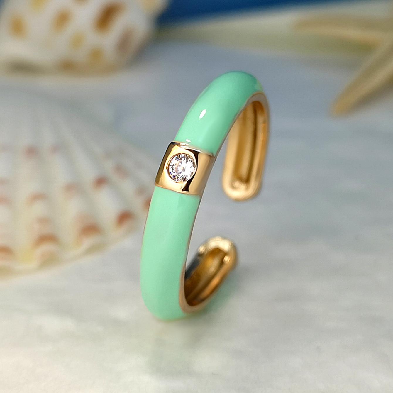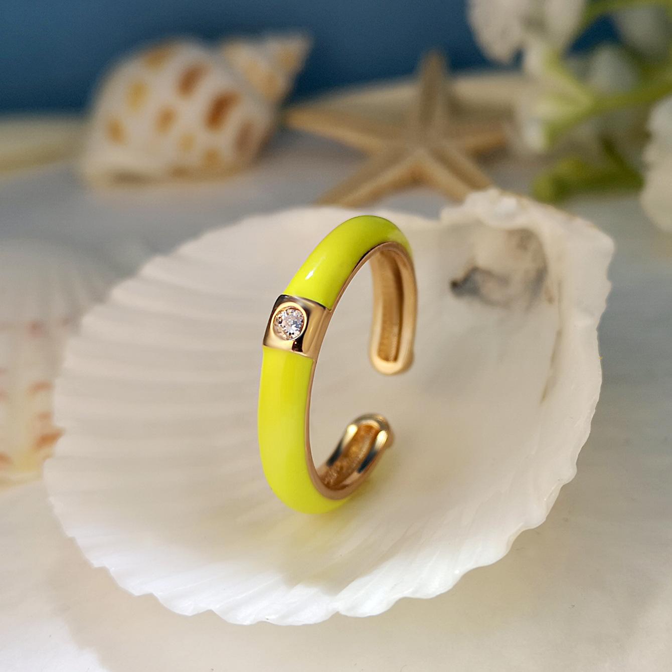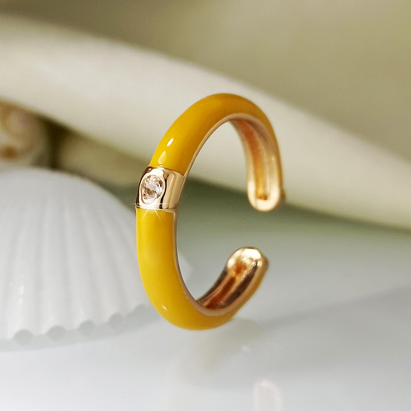 Introdução aos atributos do bebê Joias criativas da moda europeia e americana da Amazon Anel de zircônia micropavimentada banhado a ouro da moda ins design simples cor gota de óleo aberto anel de dedo indicador |