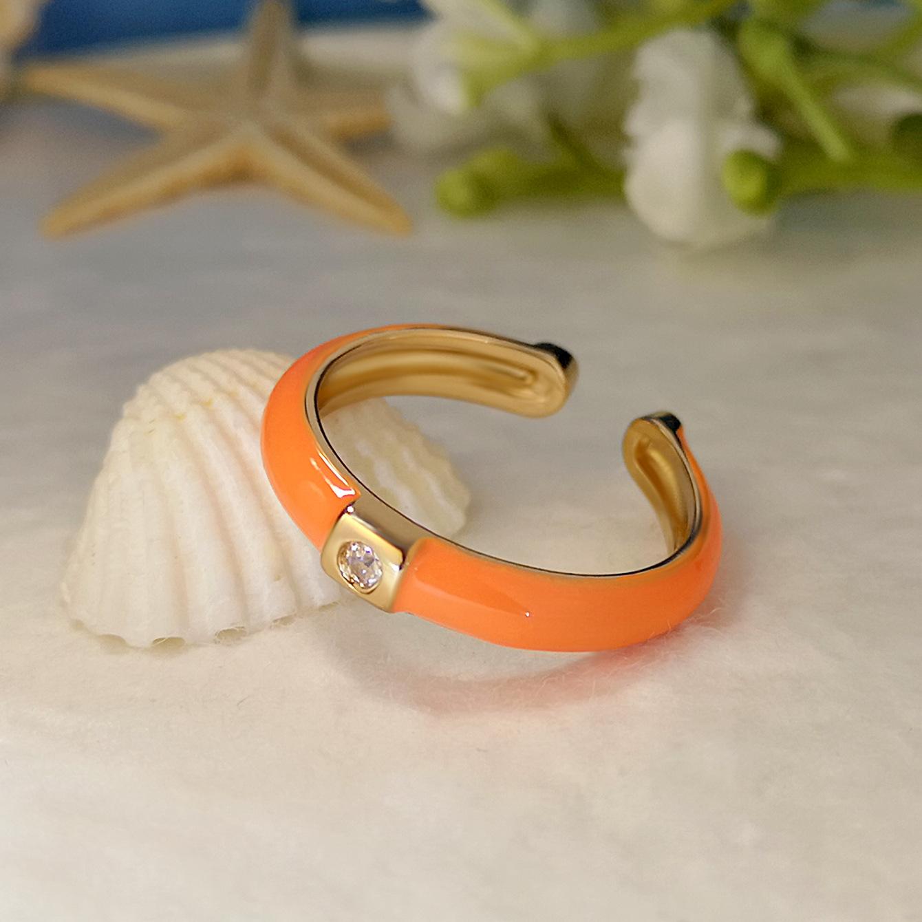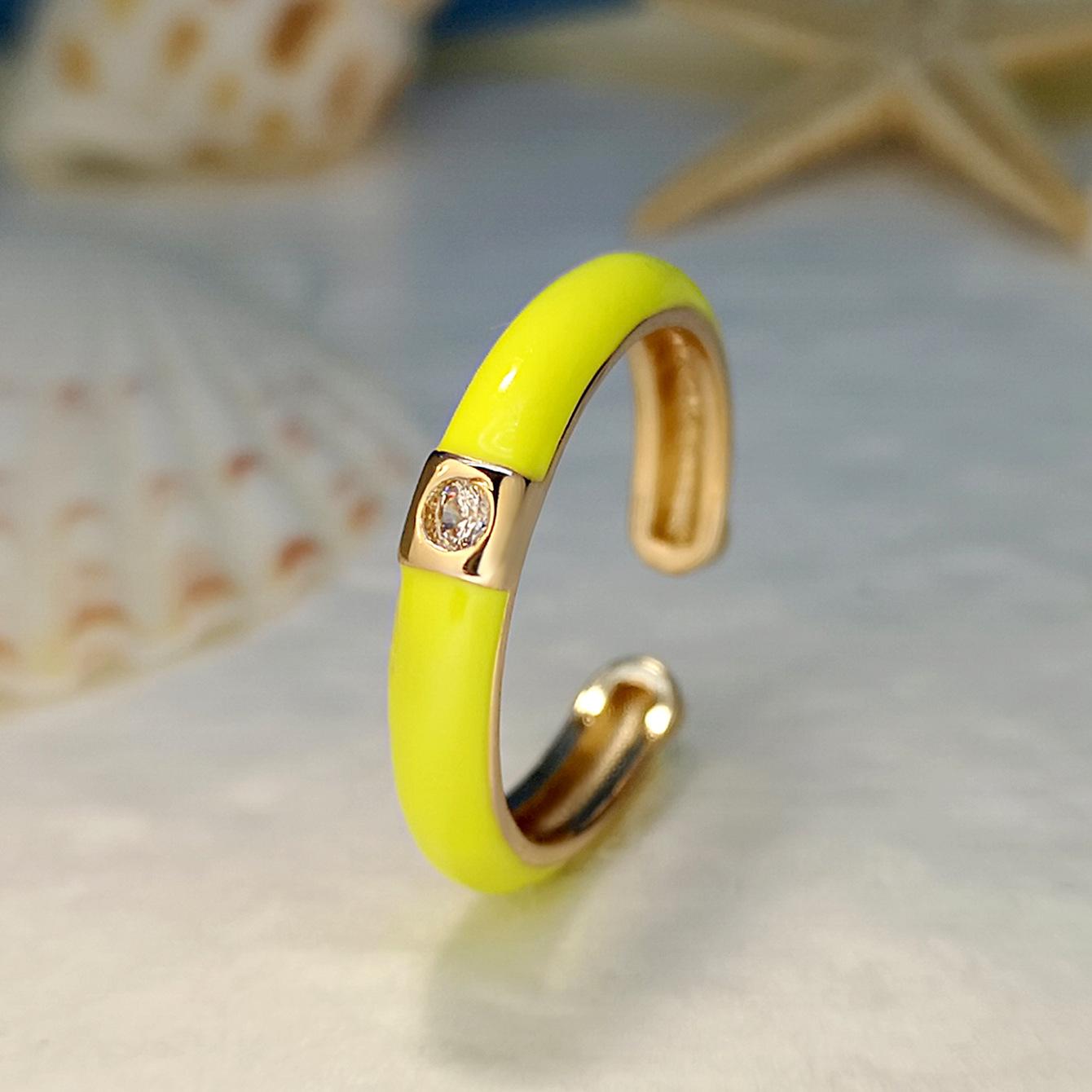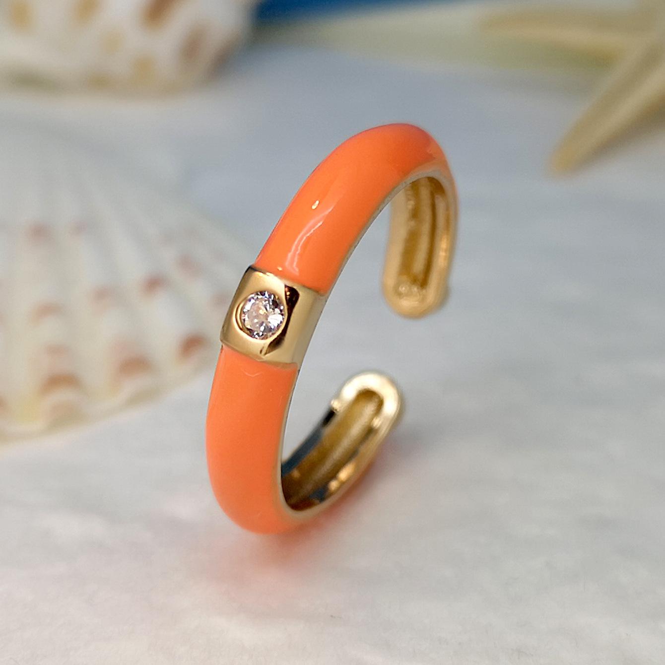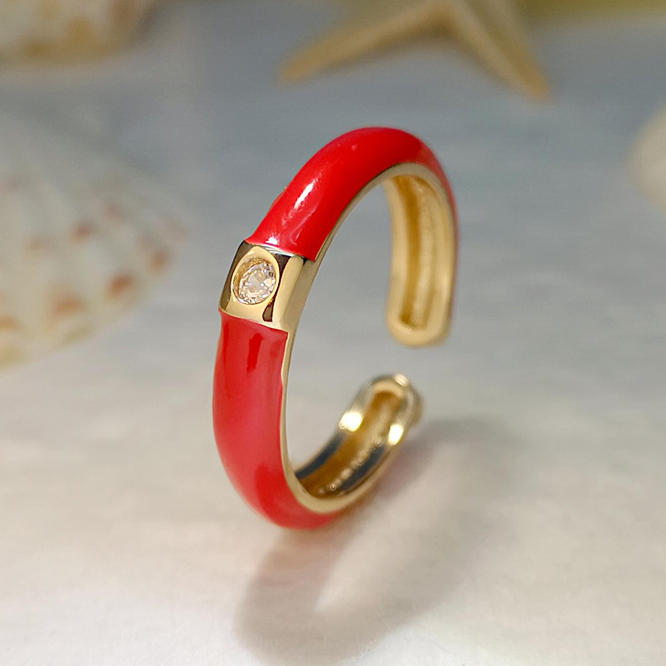 Introdução aos atributos do bebê Joias criativas da moda europeia e americana da Amazon Anel de zircônia micropavimentada banhado a ouro da moda ins design simples cor gota de óleo aberto anel de dedo indicador |