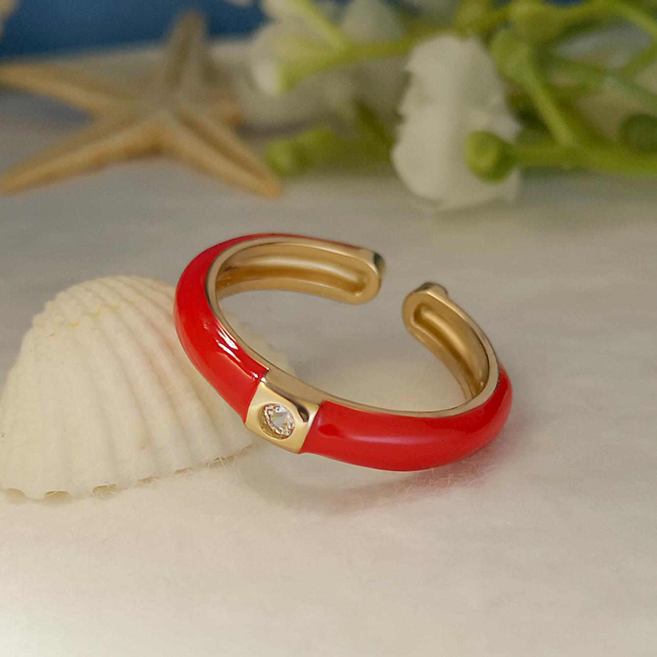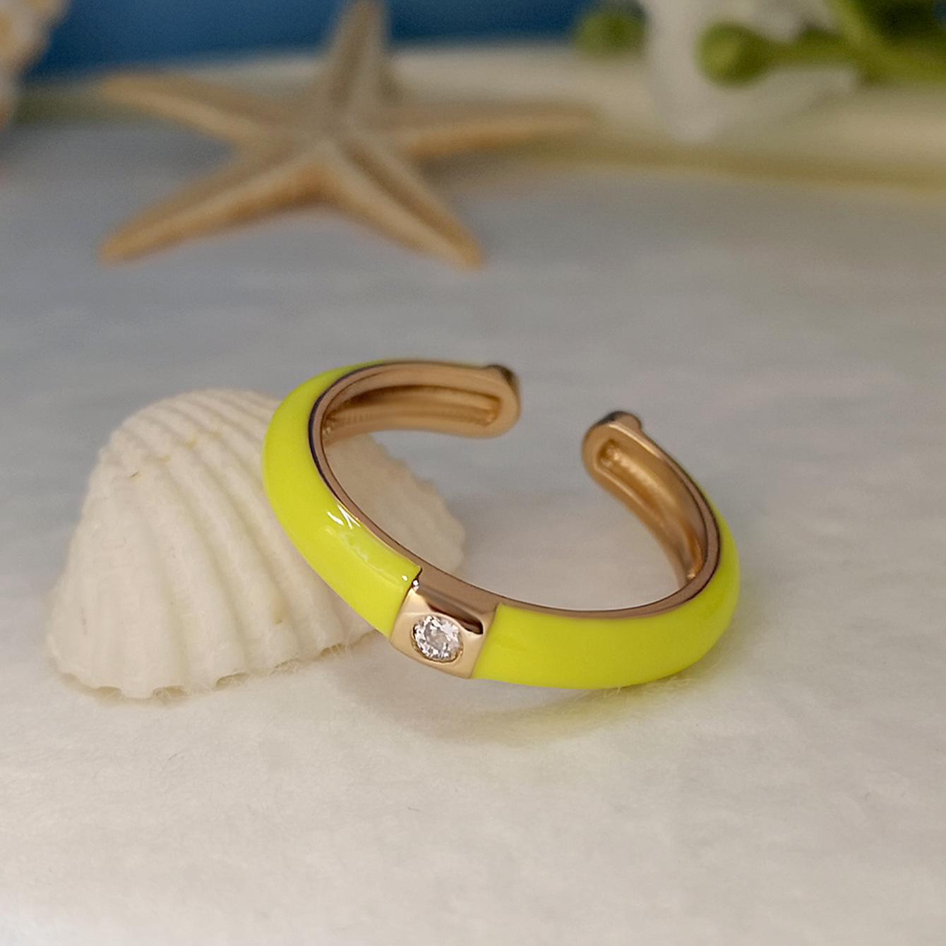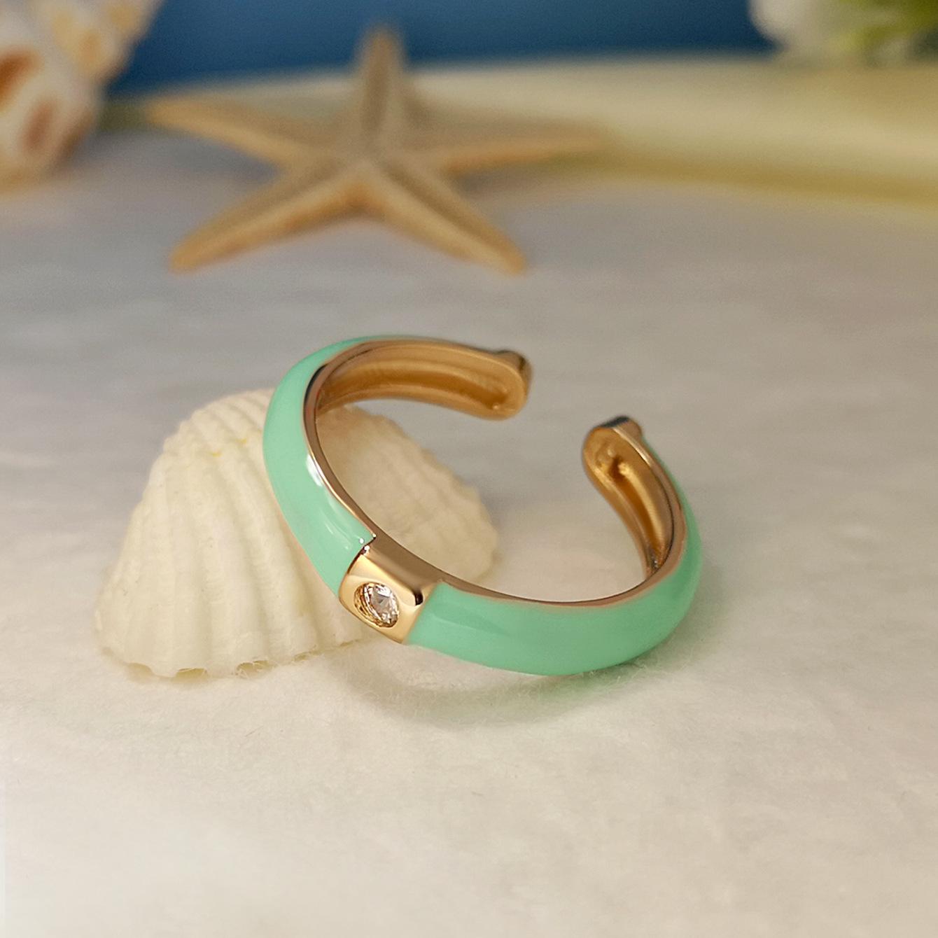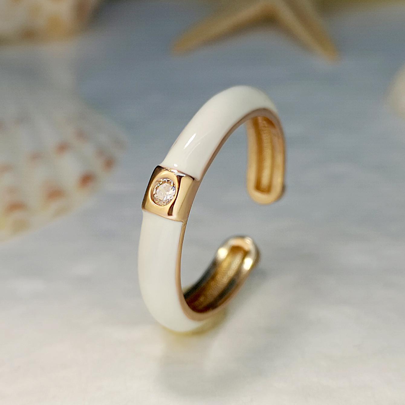 Introdução aos atributos do bebê Joias criativas da moda europeia e americana da Amazon Anel de zircônia micropavimentada banhado a ouro da moda ins design simples cor gota de óleo aberto anel de dedo indicador |