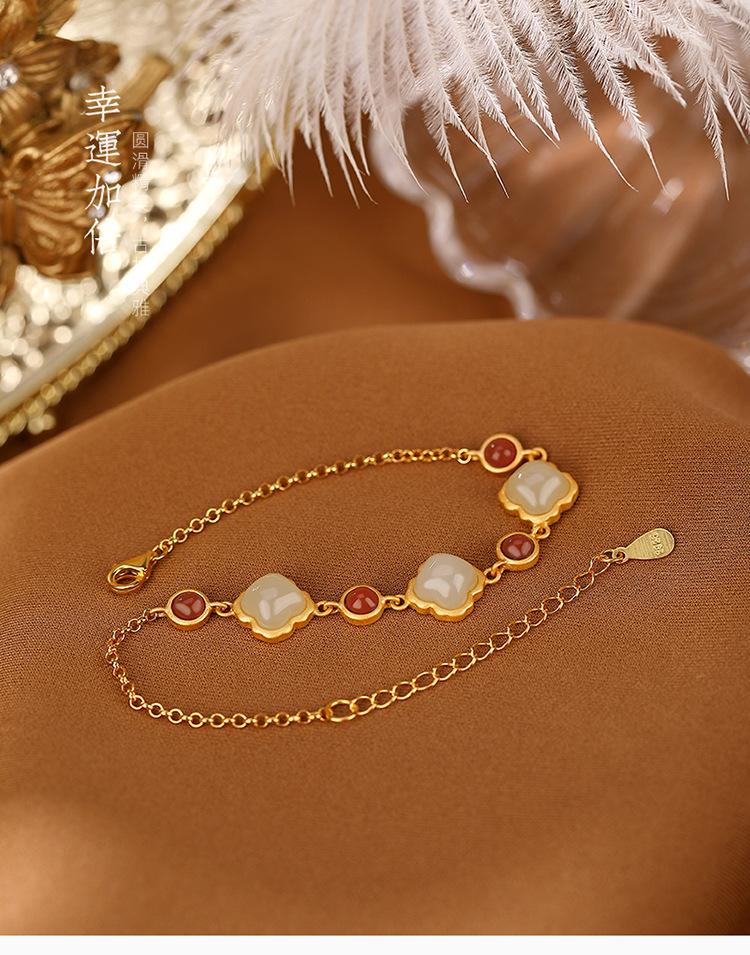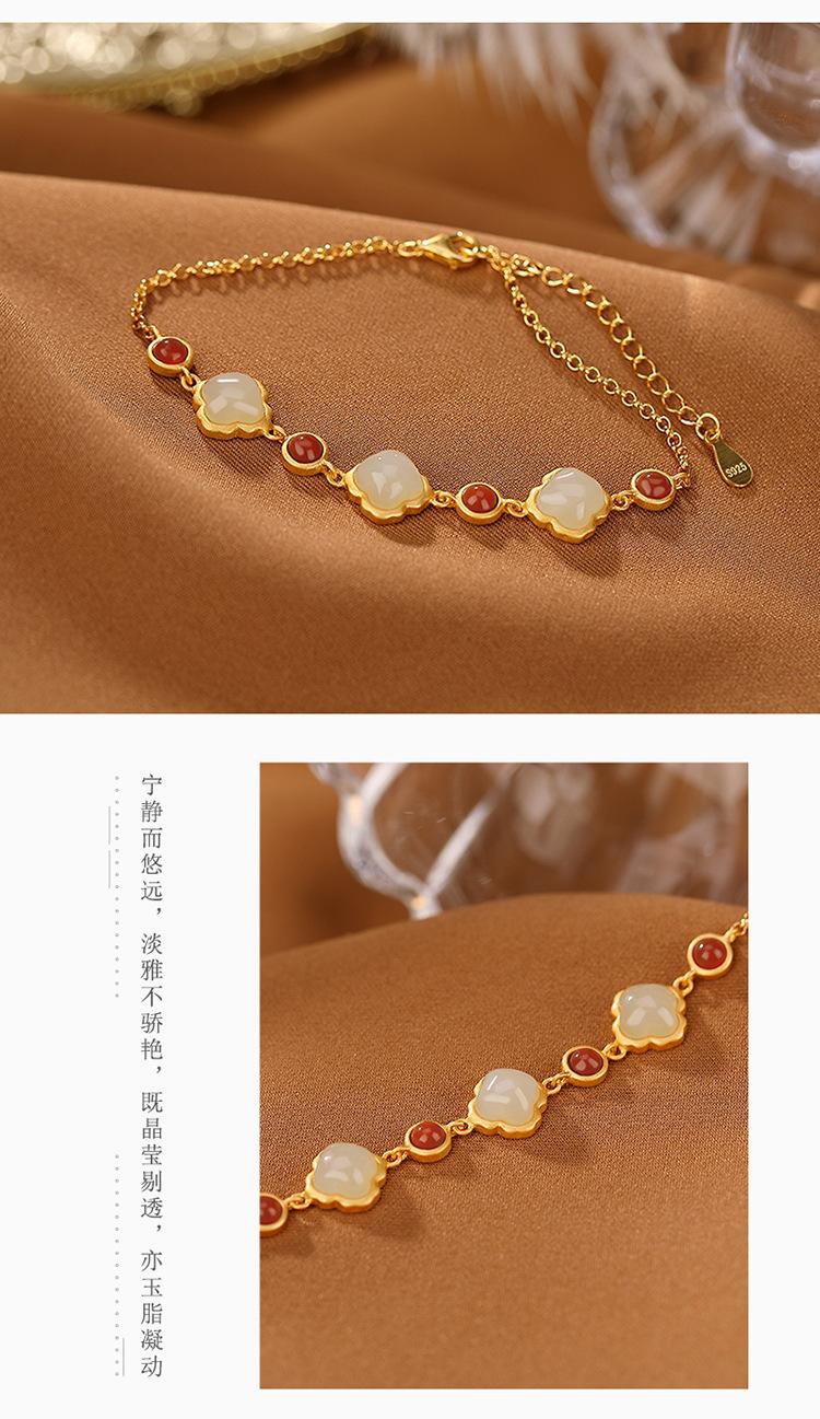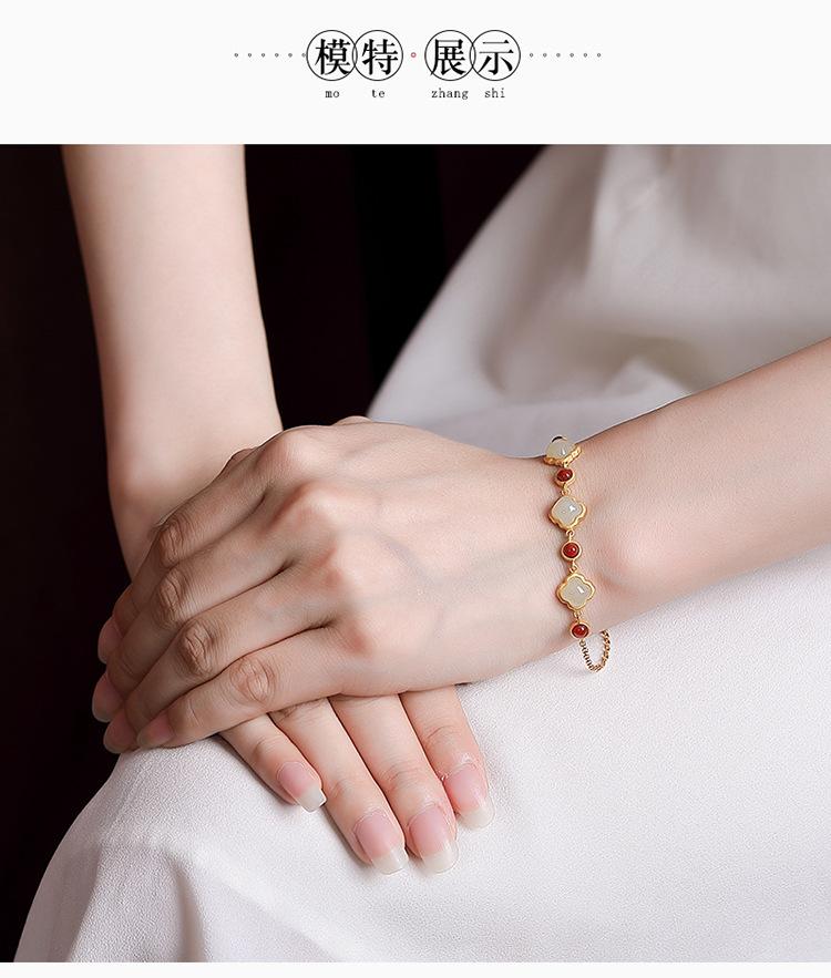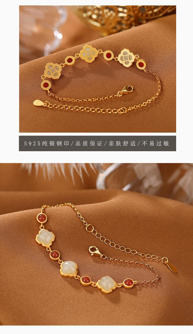 Compre Pulseira One Deer Silver S925 Prata Esterlina Banhada a Ouro Jade Hetian Vermelho do Sul Trevo de Quatro Folhas da Sorte Pulseira Elegante da Moda All-match no atacado no Joom.pro