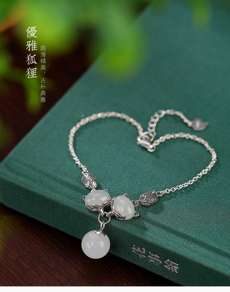 Yilu prata s925 prata esterlina natural hetian jade elegante pulseira de contas de raposa personalidade elegante all- combinar pulseira das mulheres