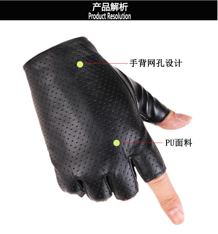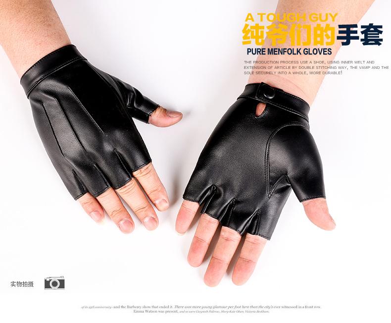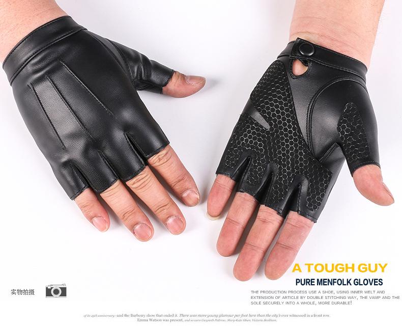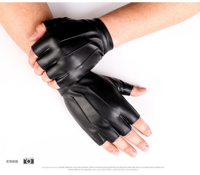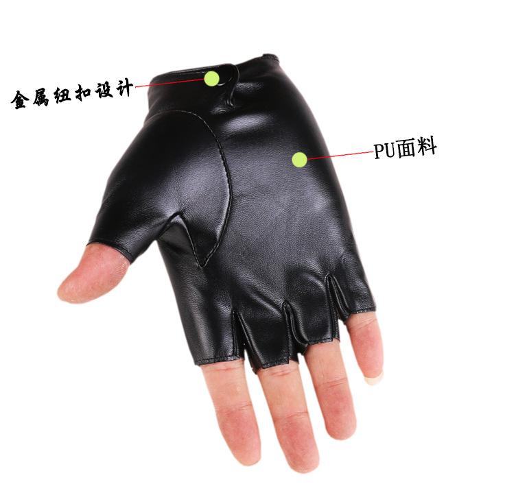 Luvas de couro de meio dedo para dança de rua masculina, boate, pole dance, rebite, luvas punk, performance, dança, show de dança