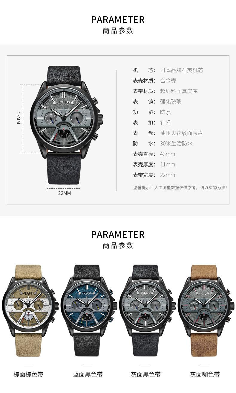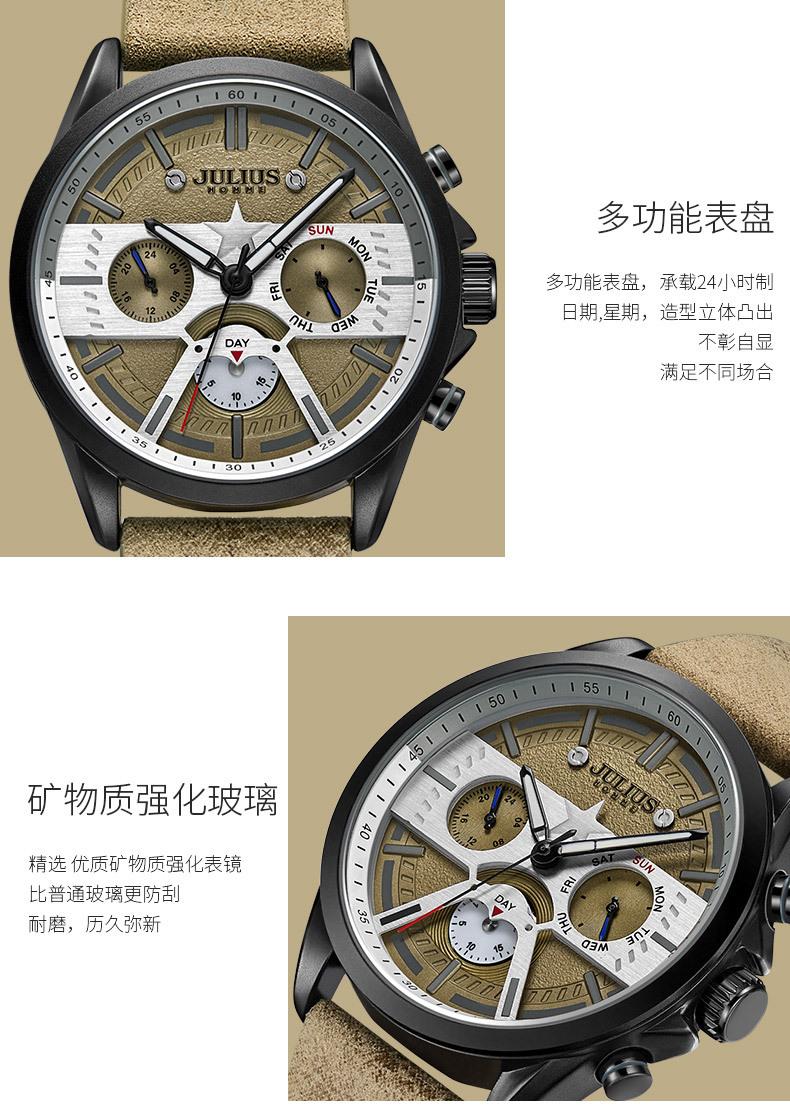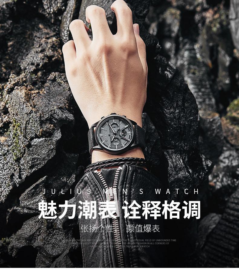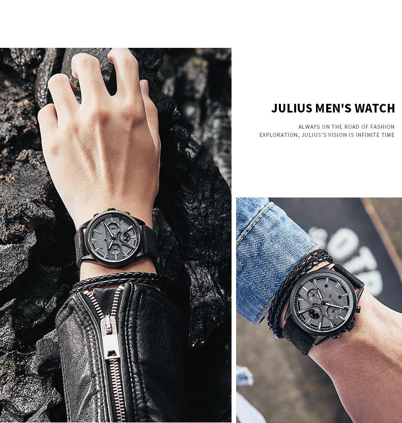 O significado da marca JULIUS é Alegre, Único, Amor, Ideal, Incomum e Brilhante, que é um relógio único pelo qual você vai se apaixonar à primeira vista (Just You Will Love Inimitable Unique Special Watch). A marca JULIUS leva esse nome e possui 7 séries principais (série clássica, série pulsante, série de pulseira, série de exploração, série de casal, série masculina e série de edição limitada).