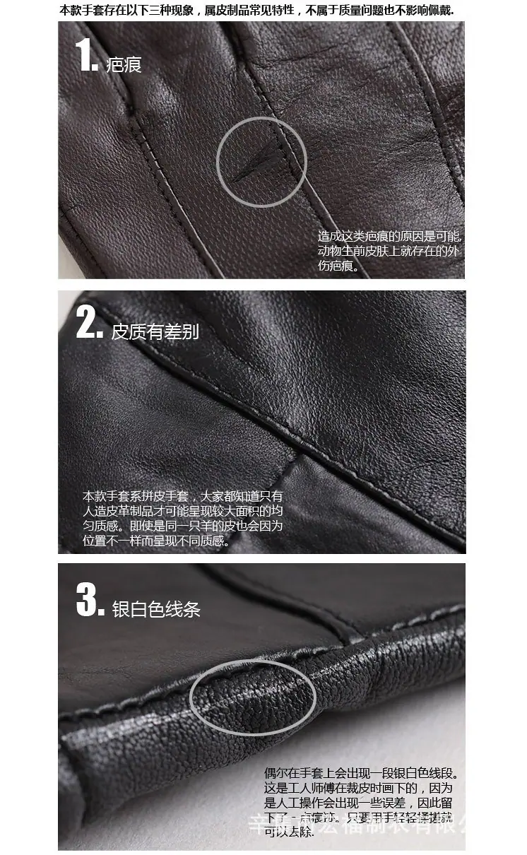 Essas luvas são feitas de pele de carneiro e têm um toque suave. Como as luvas são feitas de sobras de roupas, tentamos o nosso melhor para uniformizar as cores, mas é inevitável queHaverá uma ligeira diferença de cor e pode haver pequenos defeitos. No entanto, este par de luvas é acessível e pode atender às necessidades de usar luvas à prova de vento e quentes.。