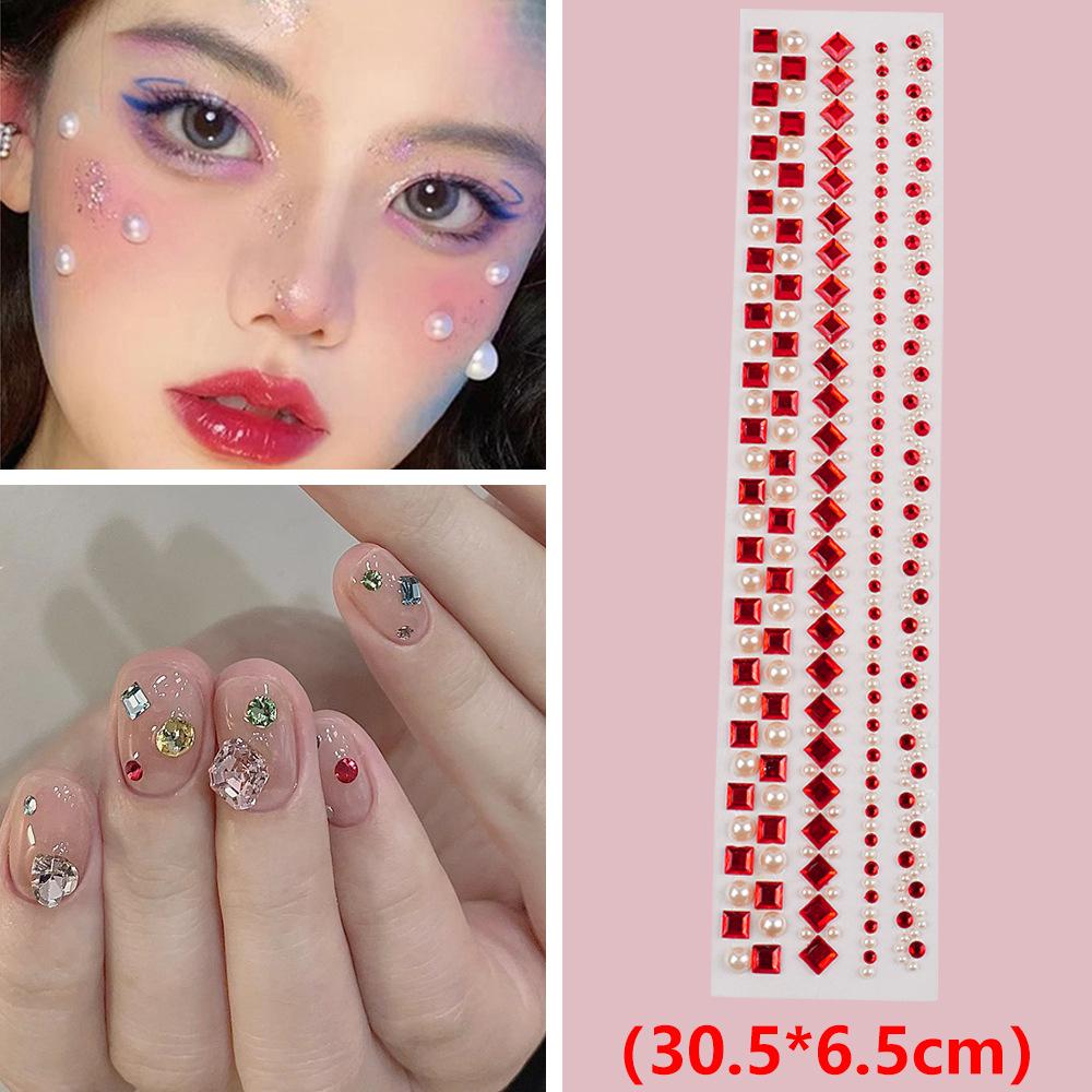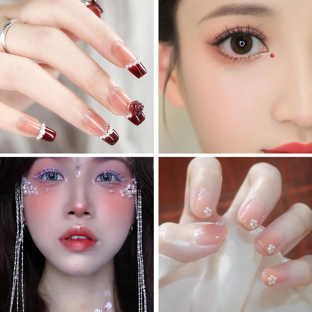 Nombre: Pegatinas de diamantes acrílicos en varios tamaños, diamantes de cejas perlados, decoración de maquillaje facial, pegatinas de diamantes de maquillaje de ojos de colores