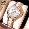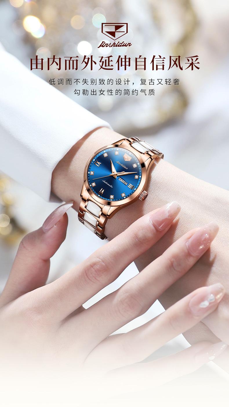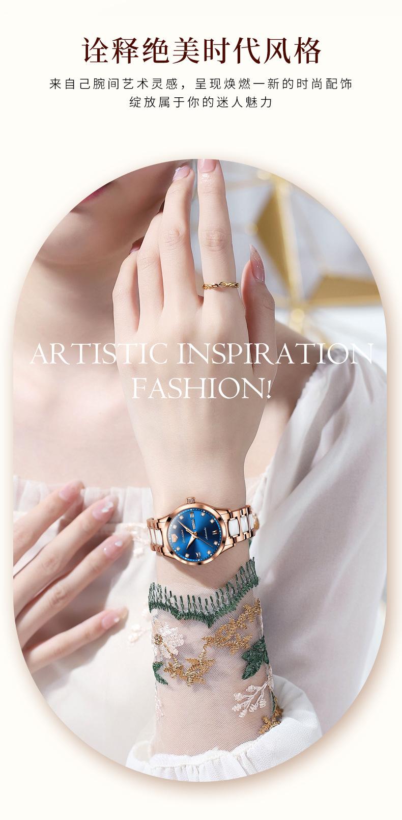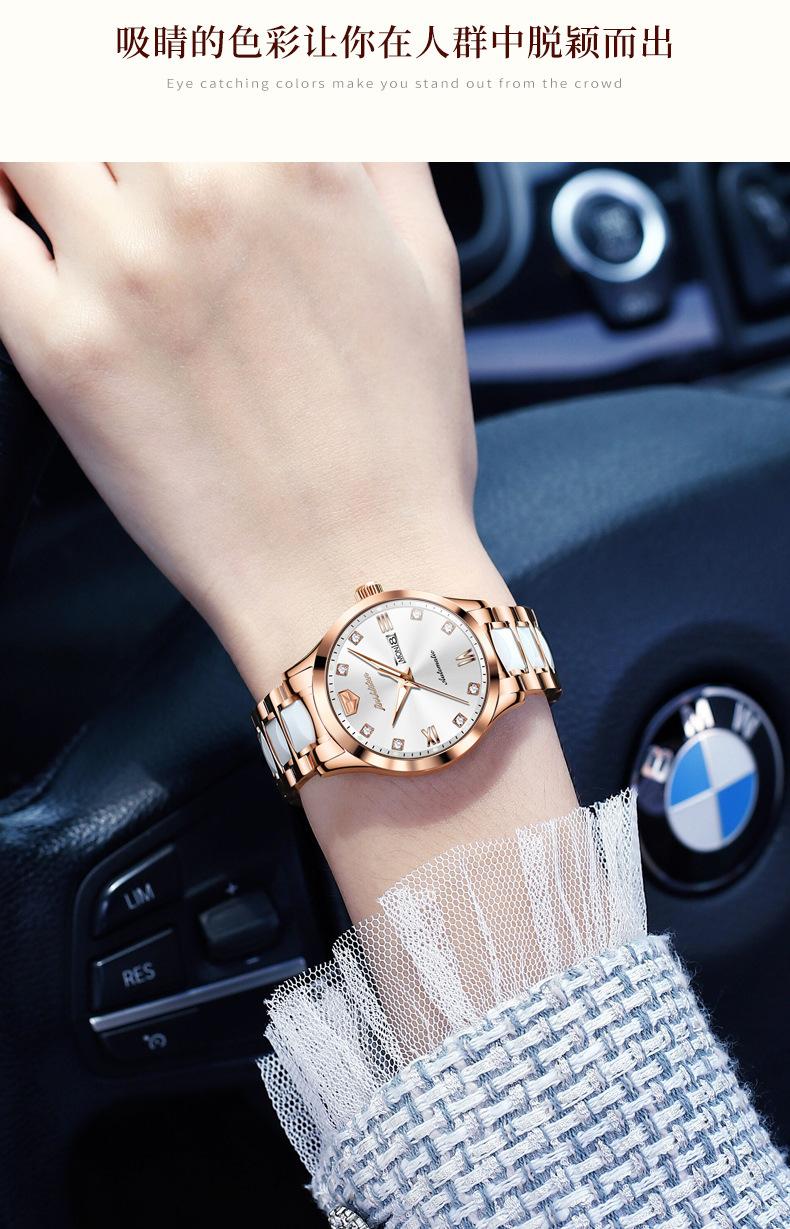 [Ponto de venda]: Estilo de data de semana da moda, pulseira de aço inoxidável e cerâmica! Quente e confortável para uso diário, estilo de deusa da moda e linda!