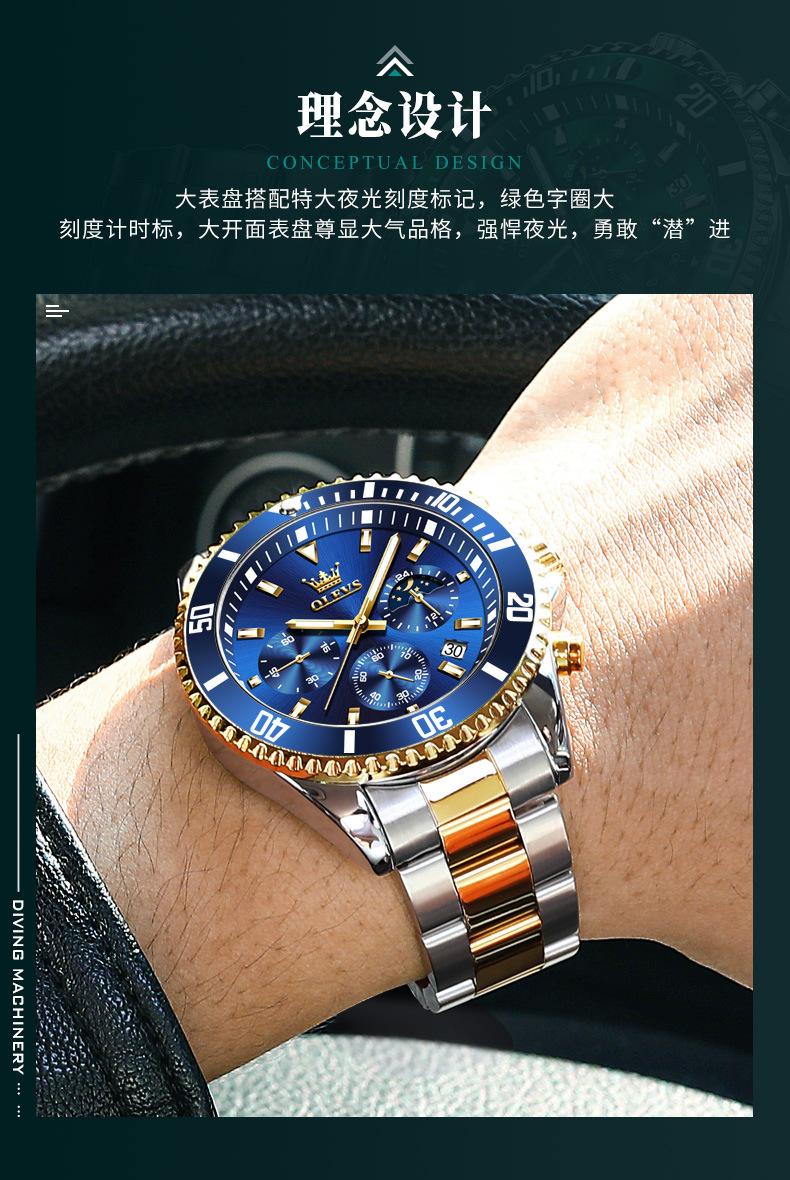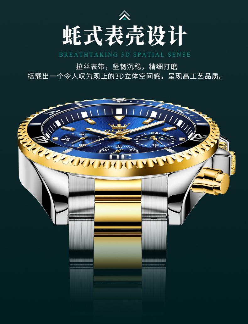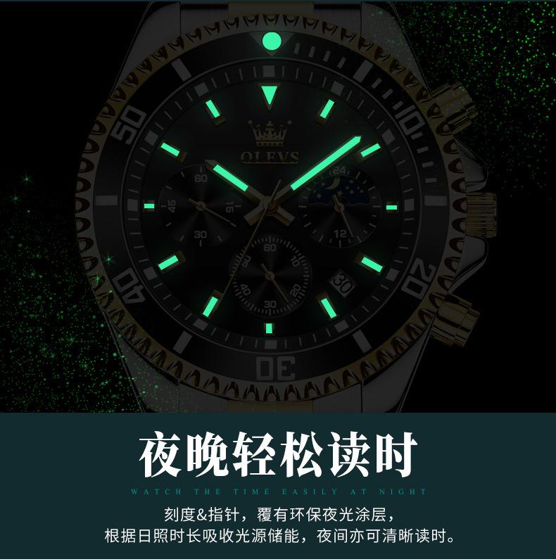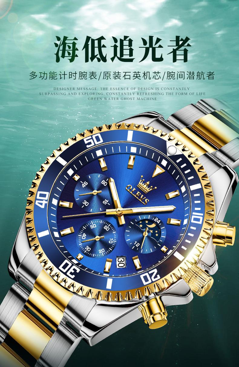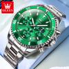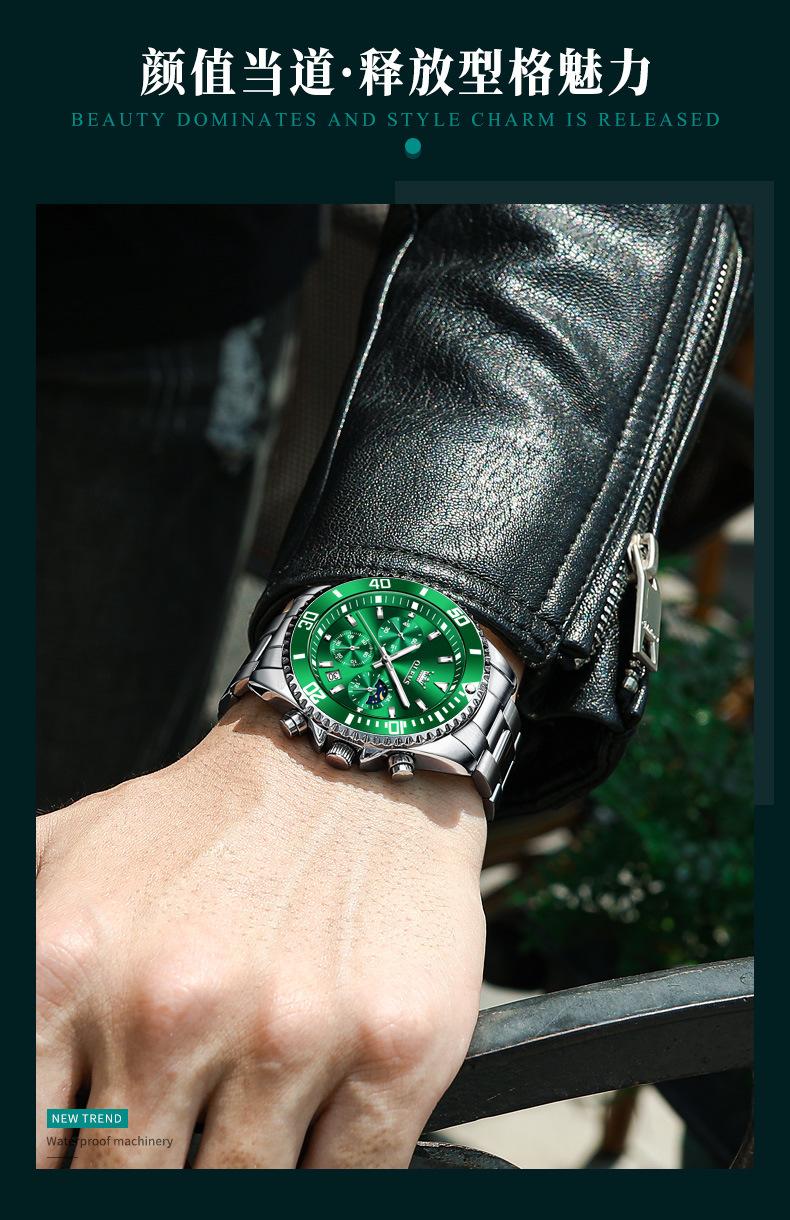 [Diâmetro]: 42,5 mm, cronógrafo multifuncional de três olhos Green Submariner, estilo luminoso!