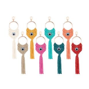 Brincos de nó de corda tecidos à mão para mulheres, estilo europeu e americano, retrô, INS, brincos de borla de corda de algodão, brincos de olho de diabo
