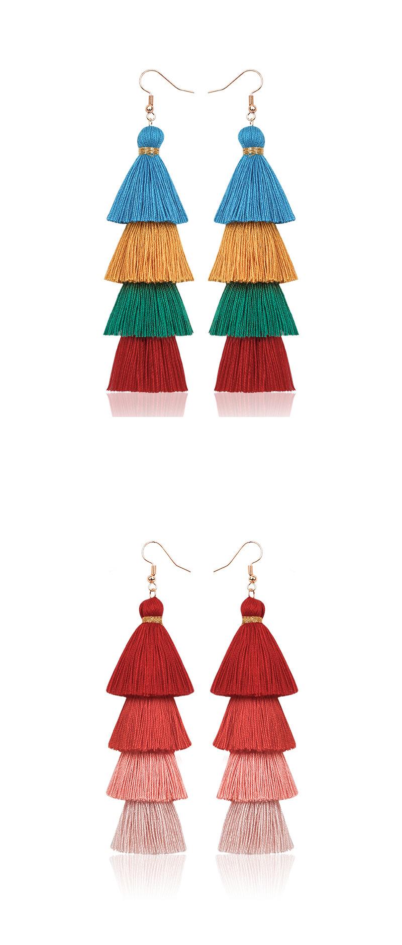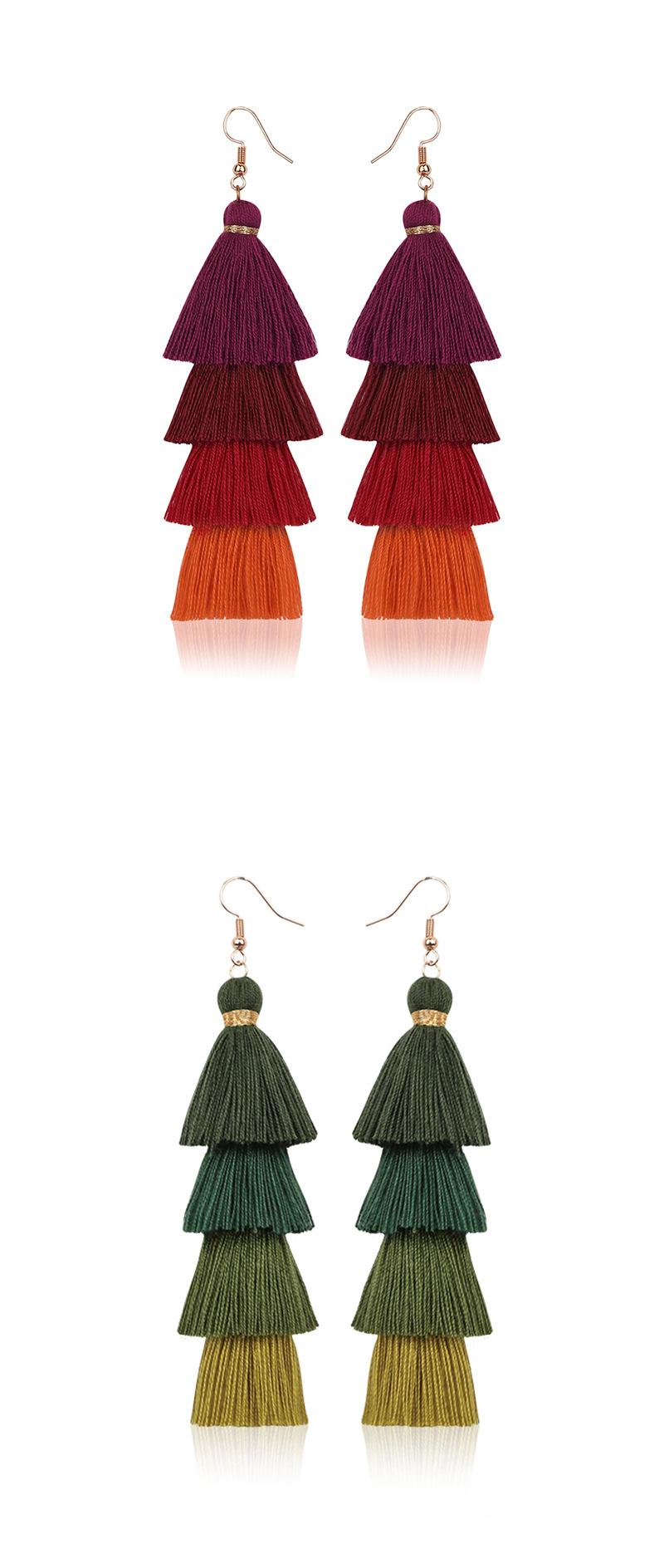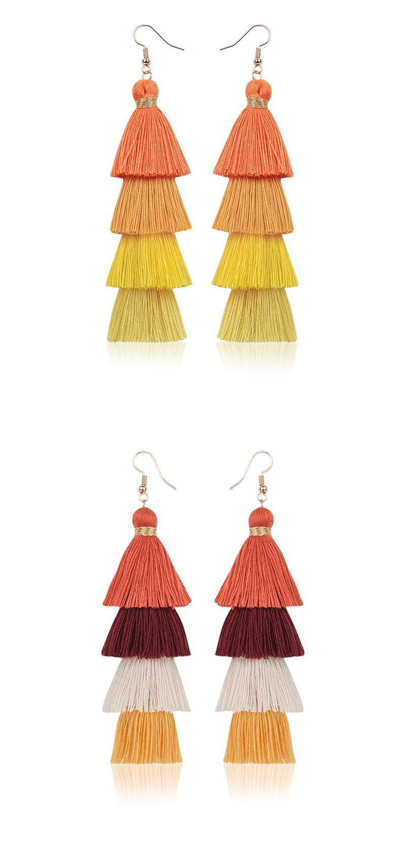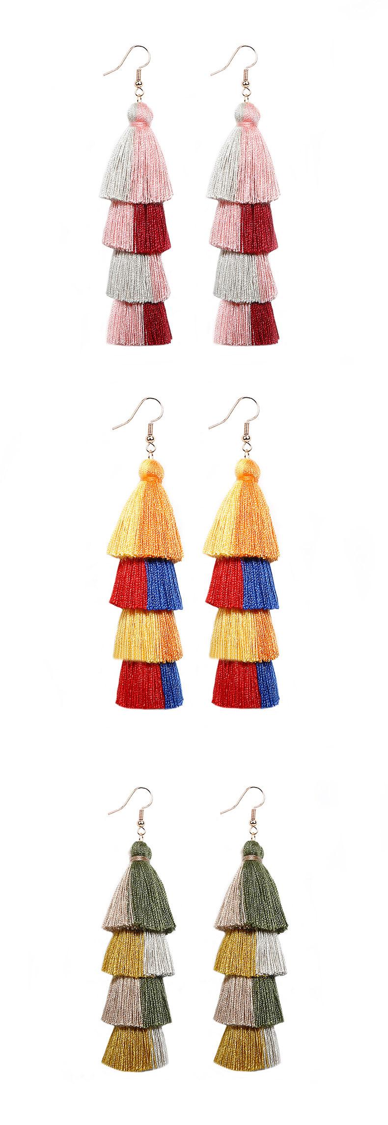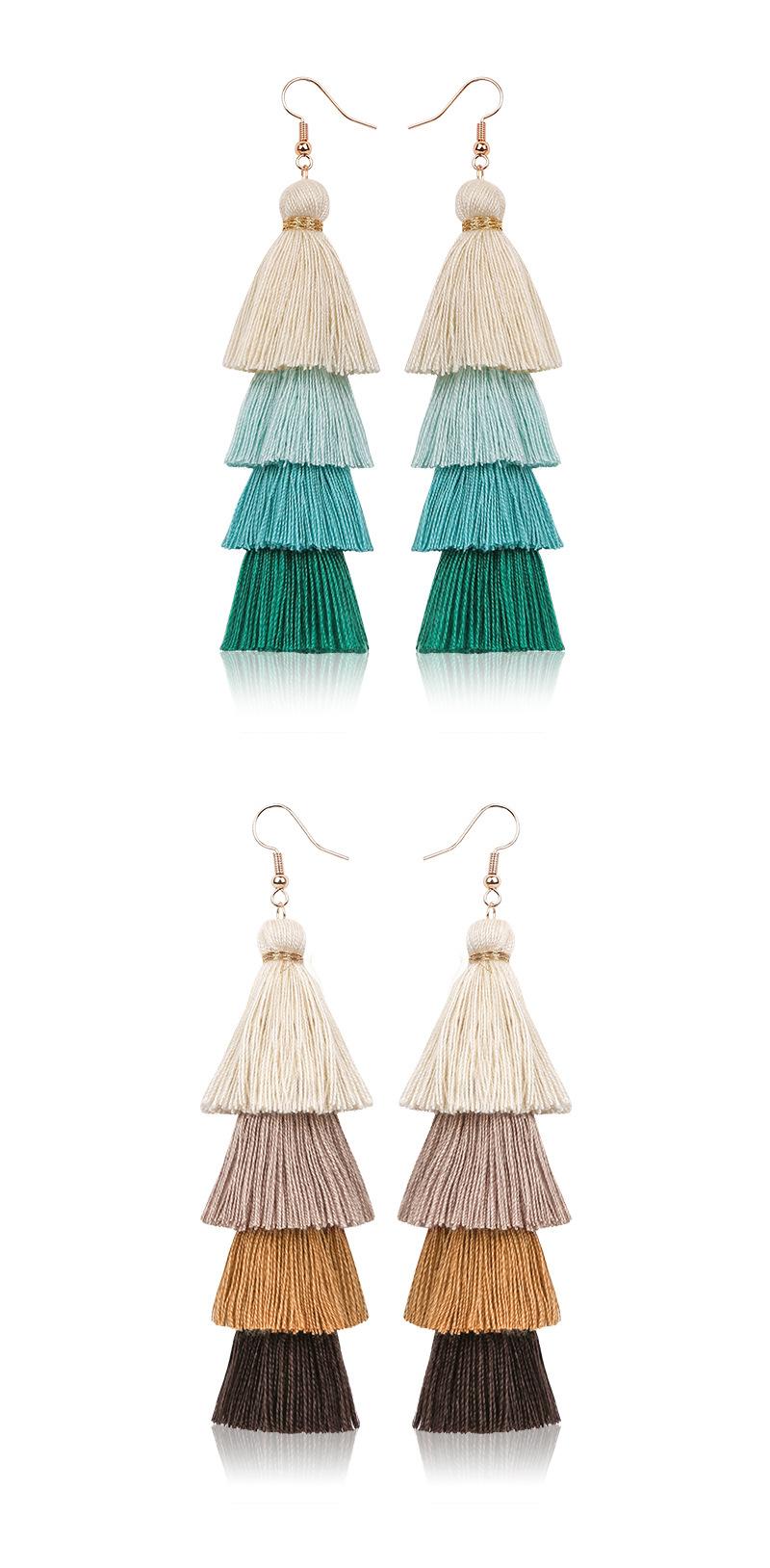 Brincos longos de borla multicamadas artesanais boêmios estilo étnico europeu e americano brincos da moda joias atacado