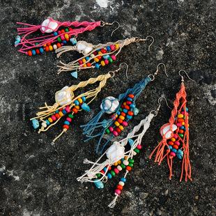 2020 novos brincos de pérola barroca corda trançada nó diy brincos artesanais estilo étnico brincos de borla