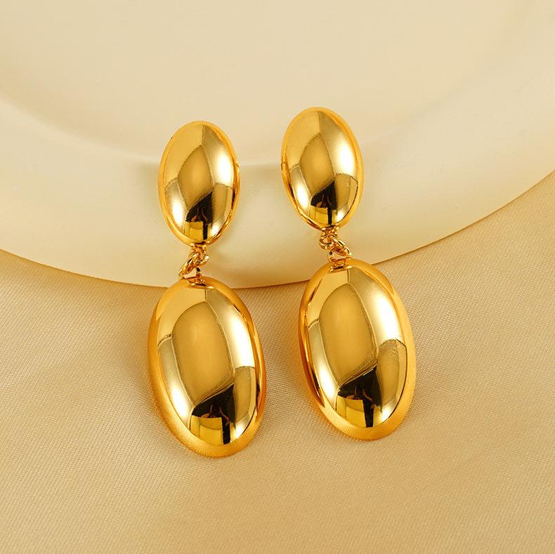 Compre Brincos ovais de brilho de personalidade de nicho europeu e americano ouro 18K Titânio feminino Aço simples elegante leve brincos de luxo no atacado no Joom.pro