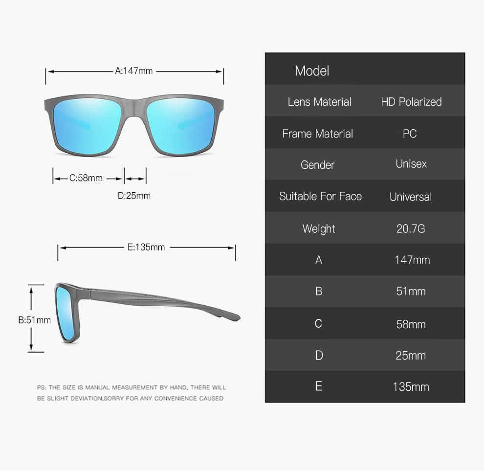 Este par de óculos de sol polarizados usa lentes reforçadas espessadas. As vantagens das lentes reforçadas são resistência ao desgaste, boa flexibilidade, forte resistência ao impacto, visão clara e bom efeito antirreflexo!
