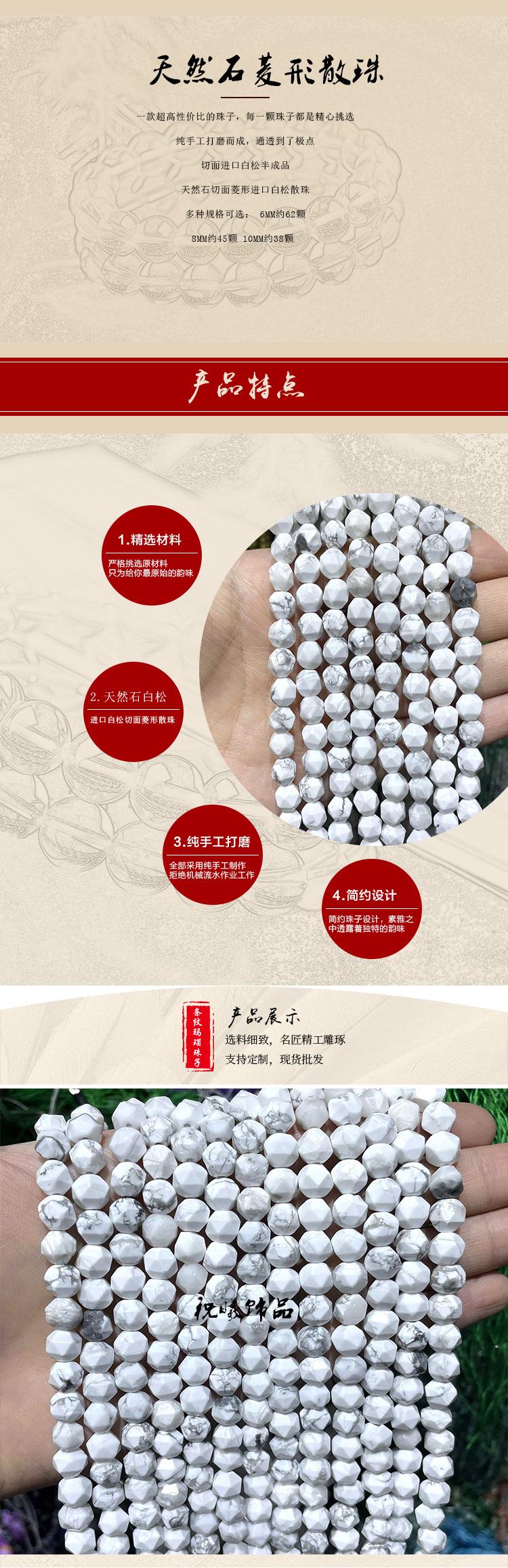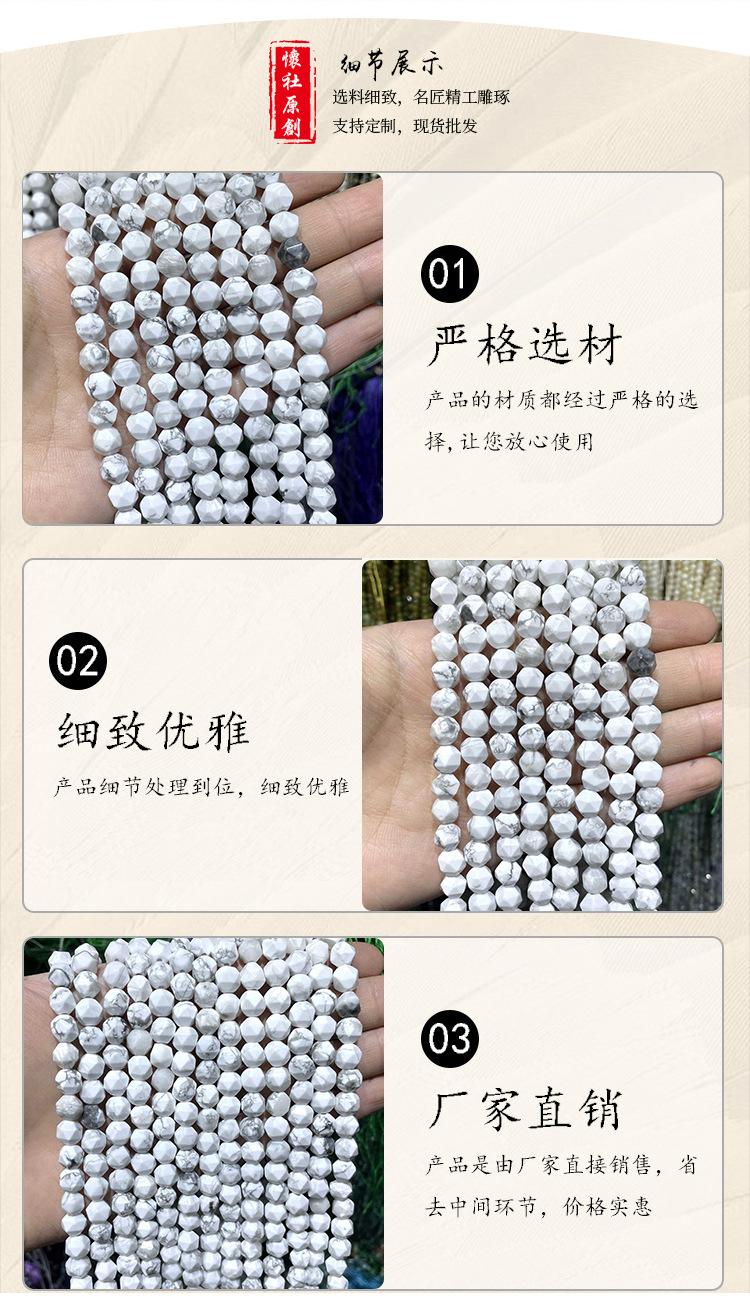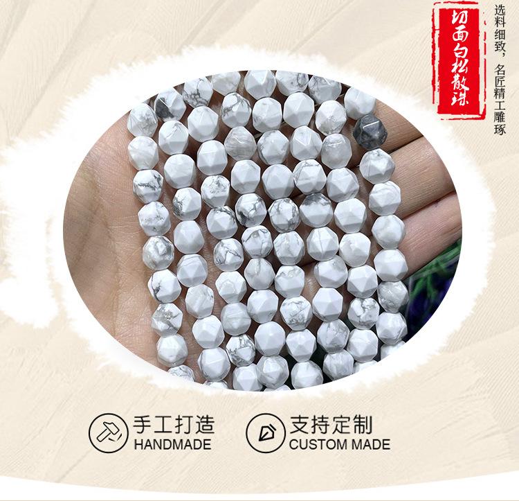 Contas soltas facetadas de pedra natural com furos facetados de diamante, contas de pedra faça você mesmo, joias artesanais, atacado, contas de diamante turquesa branca