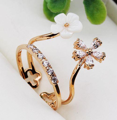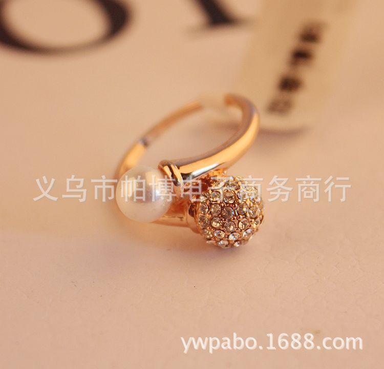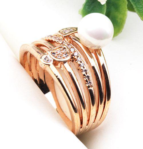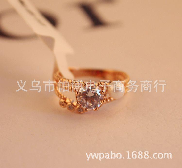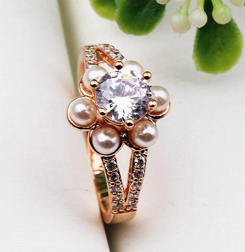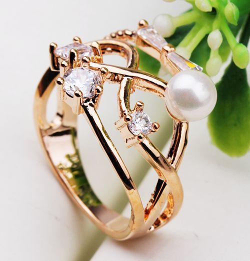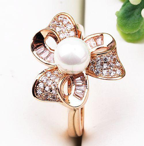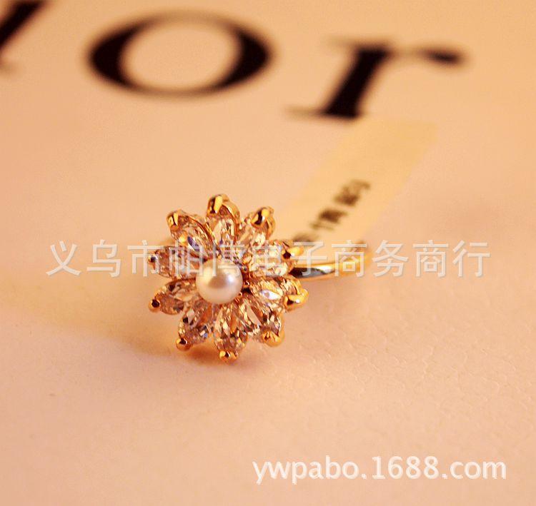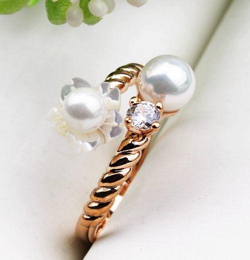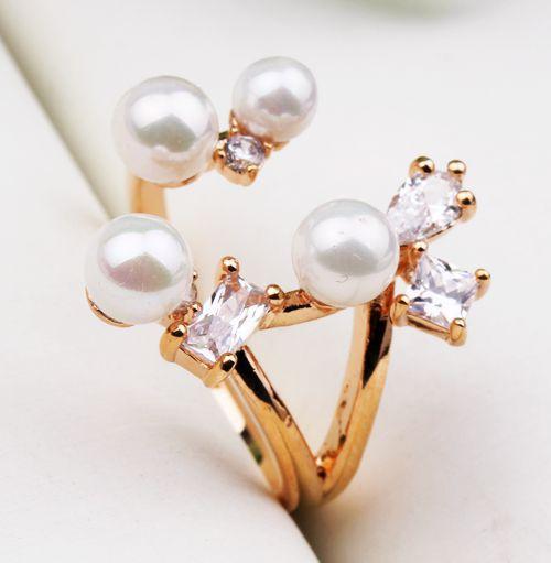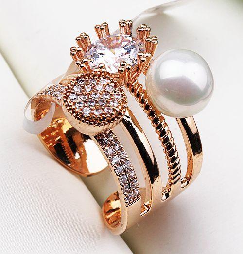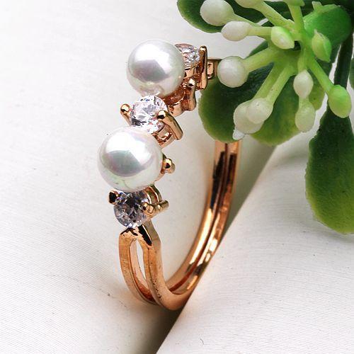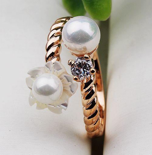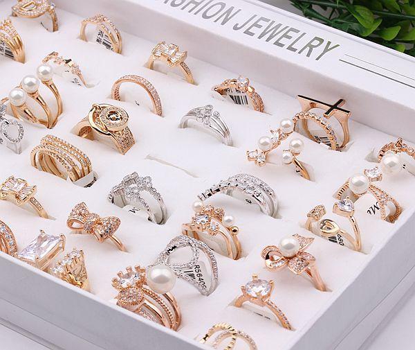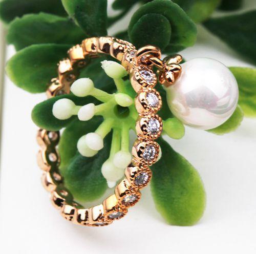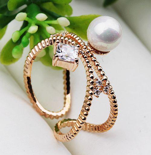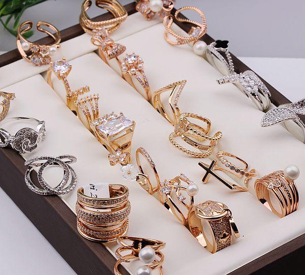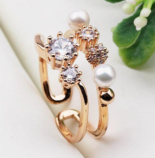 Acessórios de mão de joias coreanas de alta qualidade, moda real, banhado a ouro, anel com preservação de cor, incrustado de zircônia, strass, anel de pérola, lote misto