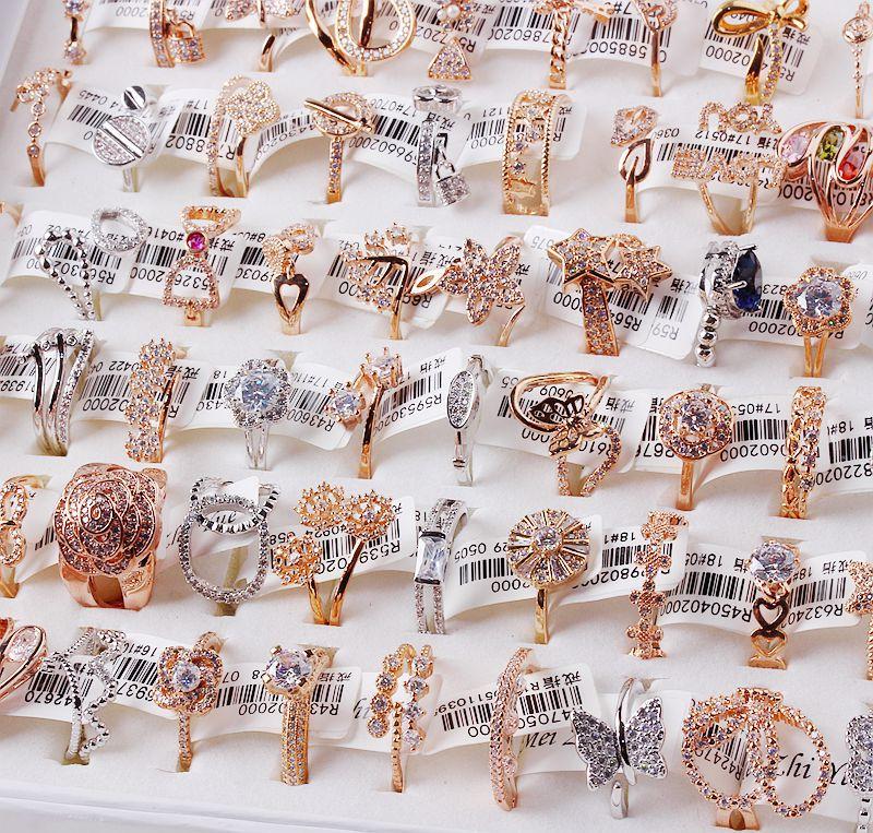 Este tipo de anel é vendido por uma grande fábrica para lojas de departamento. O preço do shopping é mais de 50 yuans, e o preço de atacado é mais de 10-20 yuans por modelo. Parte do excesso de estoque é retirado para descarte.
