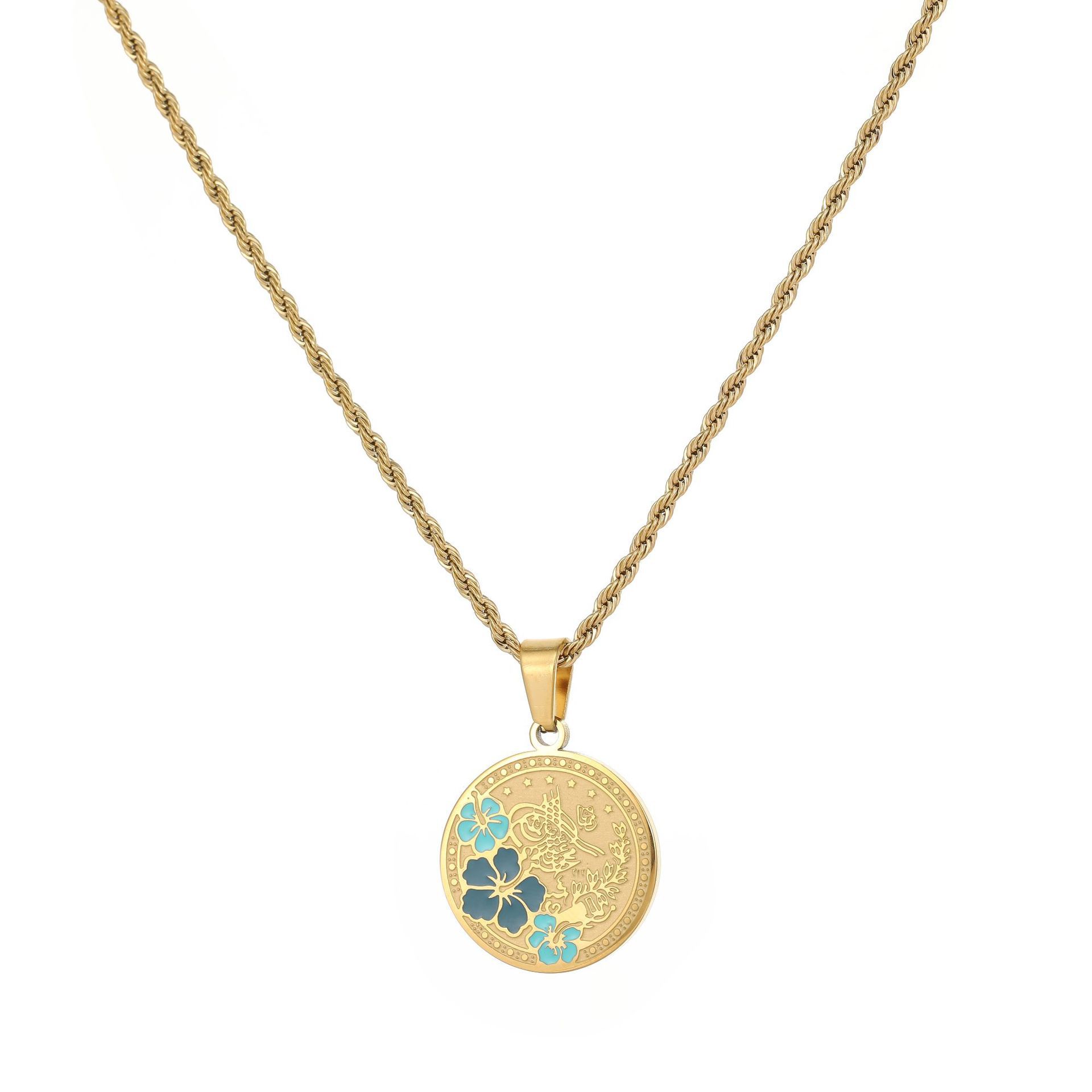 2. Tamaño: Longitud de la cadena 40 cm, ancho 2 mm, accesorios de placa redonda 23*20 mm, accesorios de barra vertical 8.5*5.5 mm, cadena de extensión 7 cm, cierre de mosquetón
