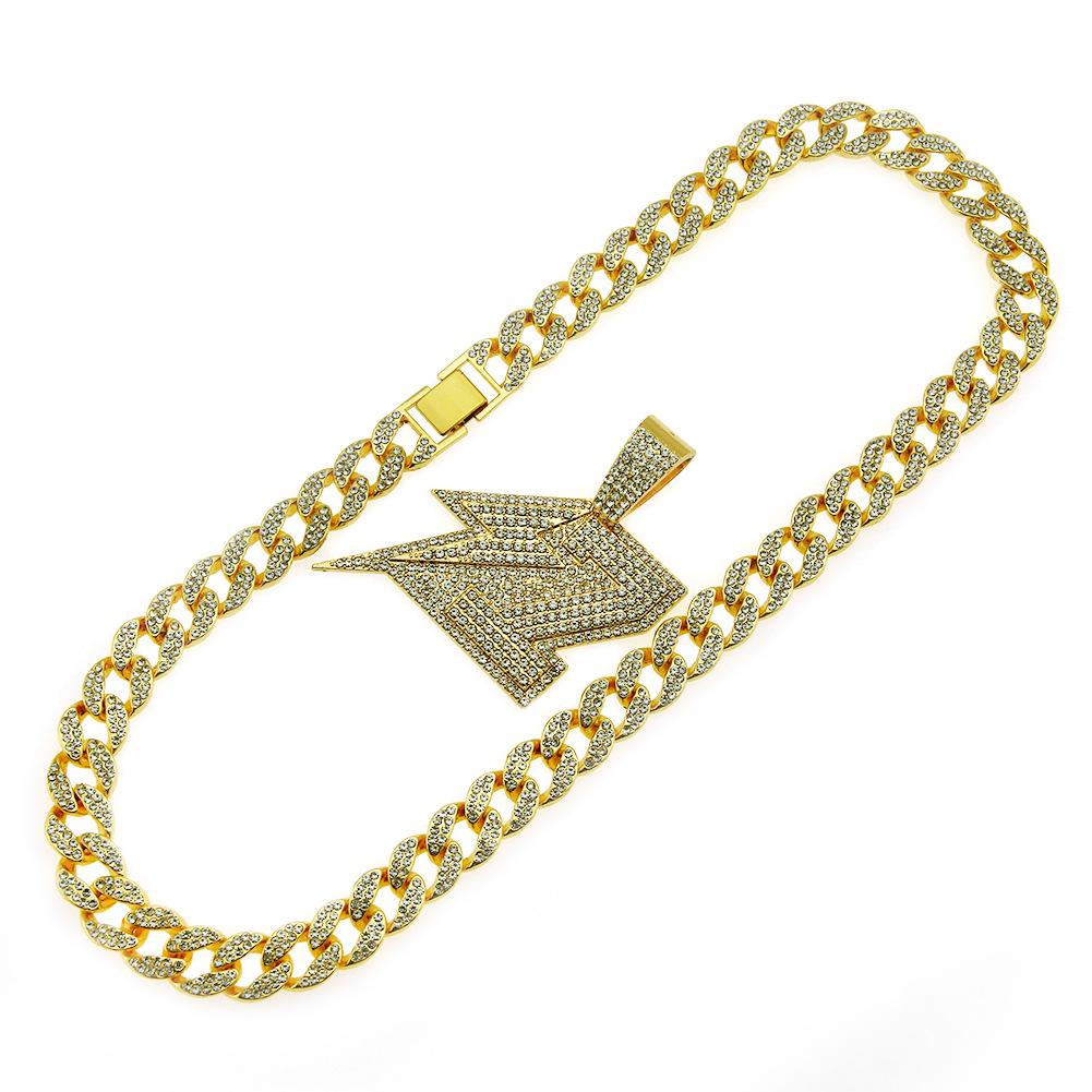 | Novo colar de carta com pingente de diamante hip-hop europeu e americano transfronteiriço, moda masculina de rua, personalidade legal, joias exageradas |