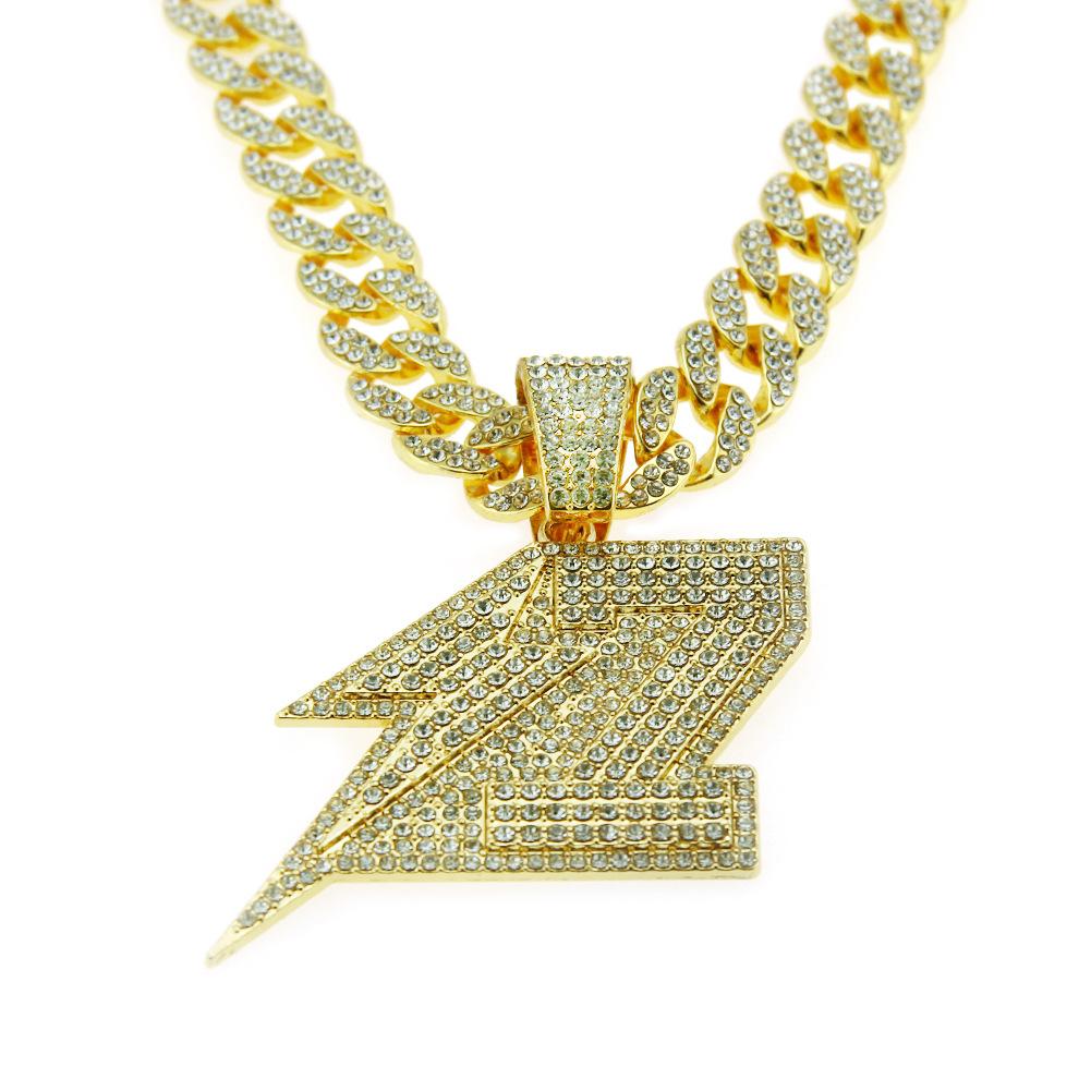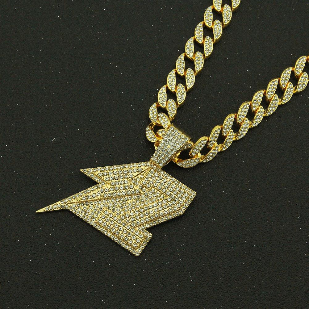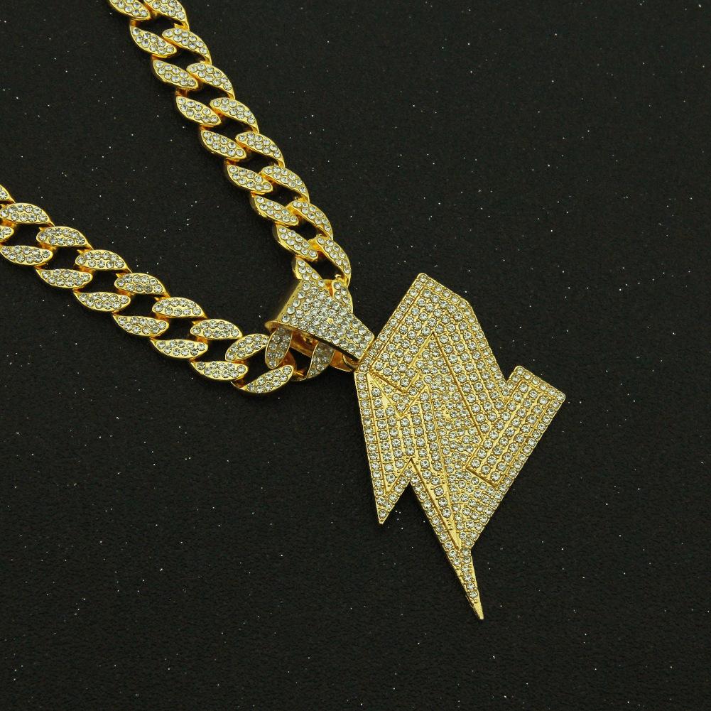 | AliExpress novo colar hip hop relâmpago colar comércio exterior moda cheia de diamante pingente europeu e americano colar fabricantes atacado |