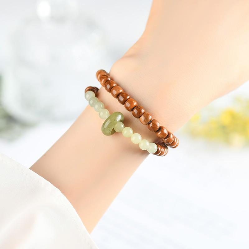 【Nome do produto】: Pulseira de círculo duplo Cook Bodhi Hetian Jade