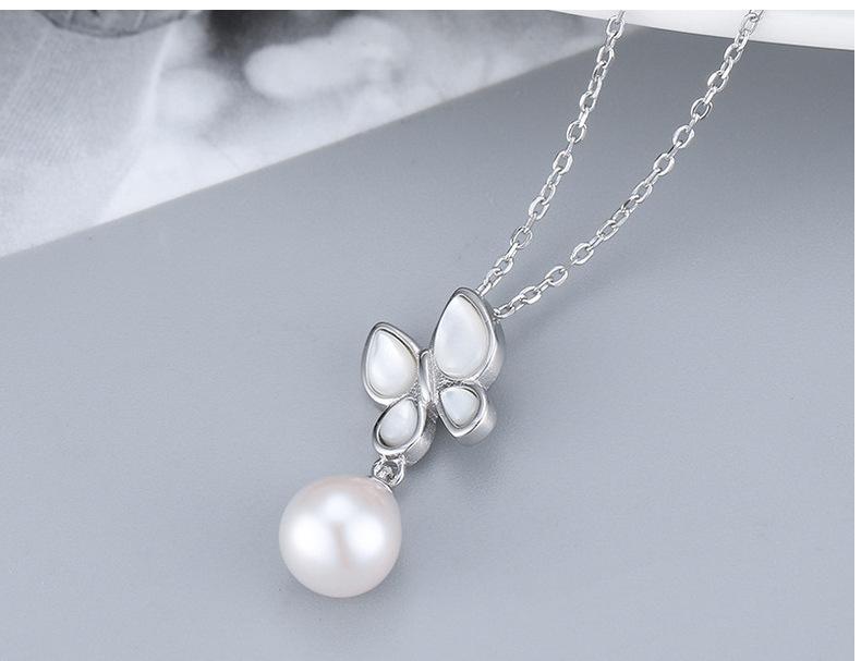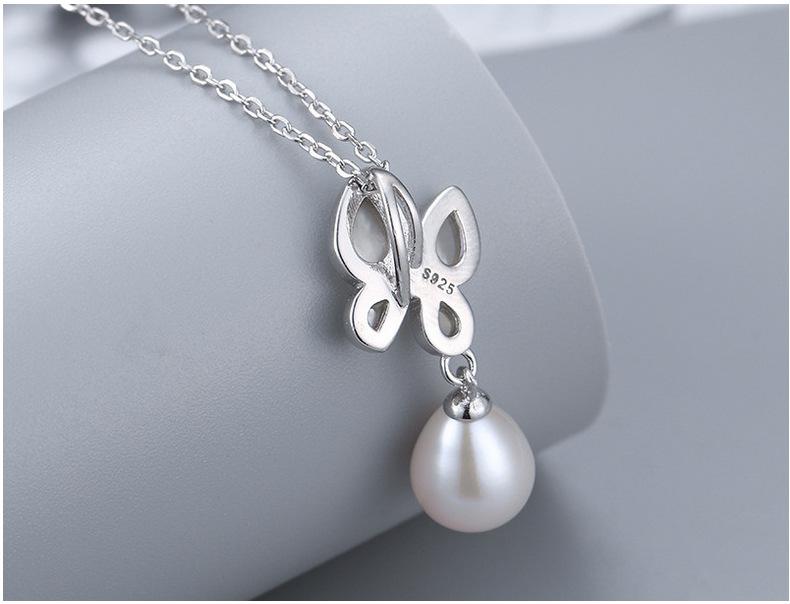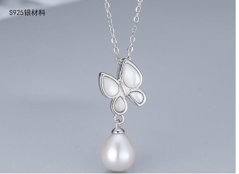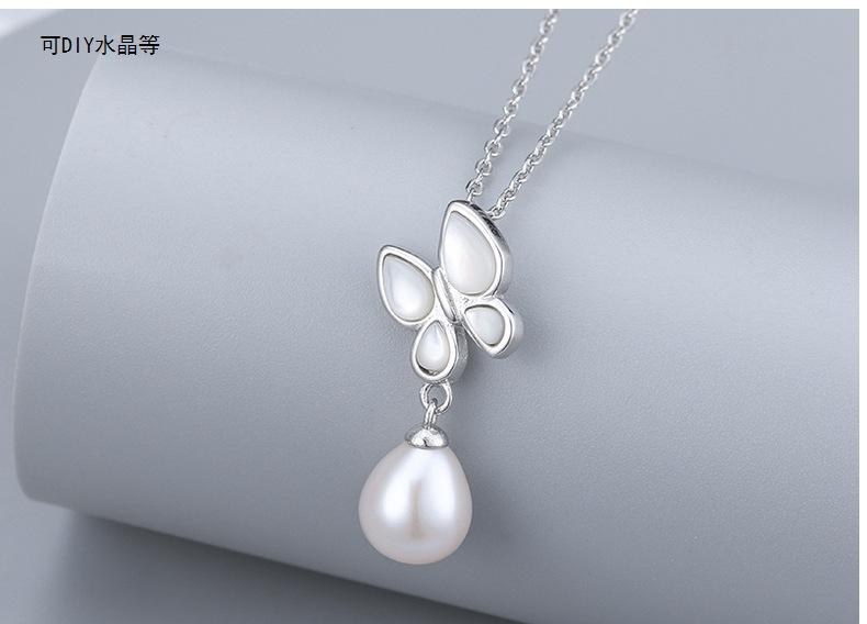 Collar de perlas de mariposa de plata S925 transfronterizo, versión coreana, colgante de moda para mujer, cadena de clavícula, joyería DIY al por mayor