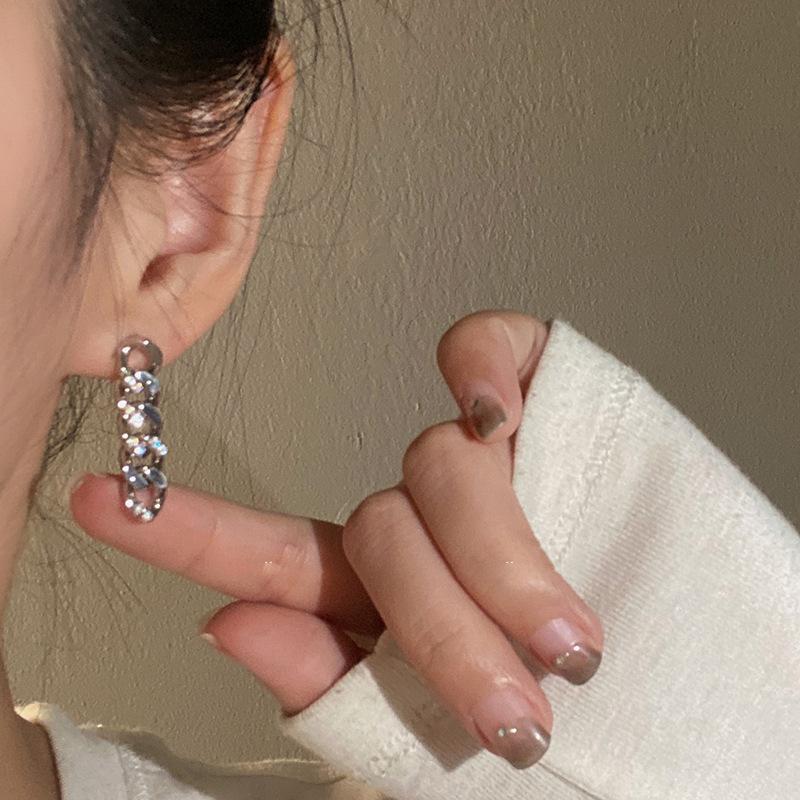 Compre Coreano Elegante Retro Trendy Cadeia Brincos Design de Nicho Estilo Frio Cristal Brincos Longos Brincos Simples Femininos no atacado no Joom.pro