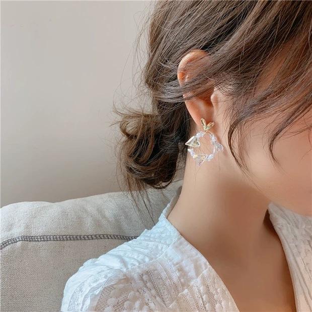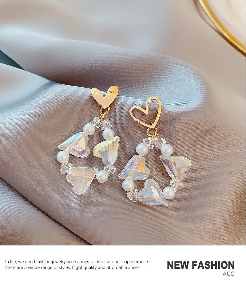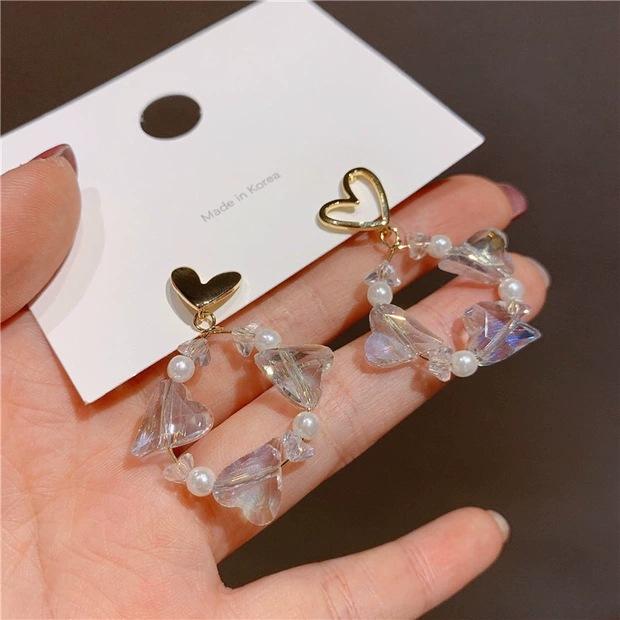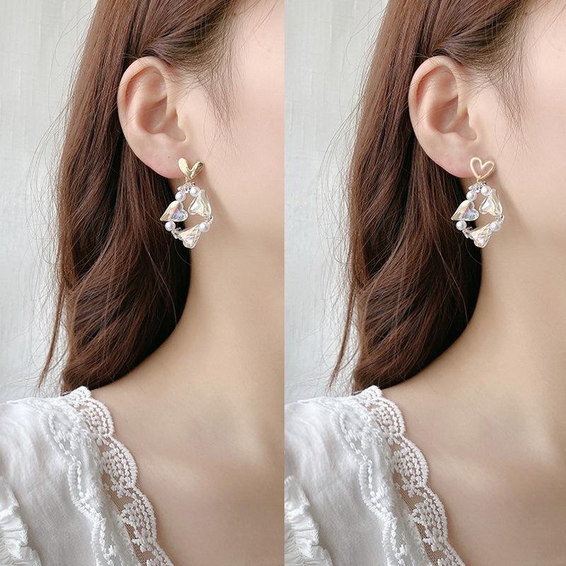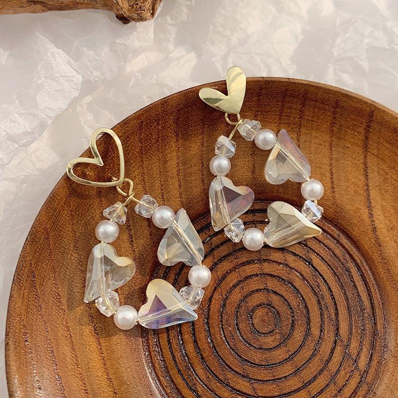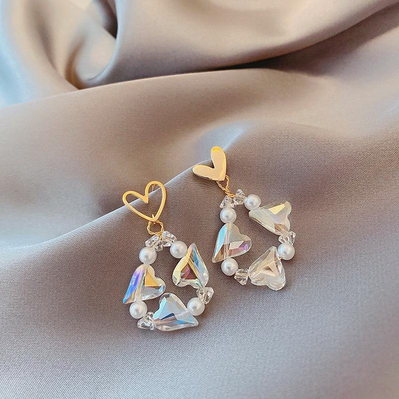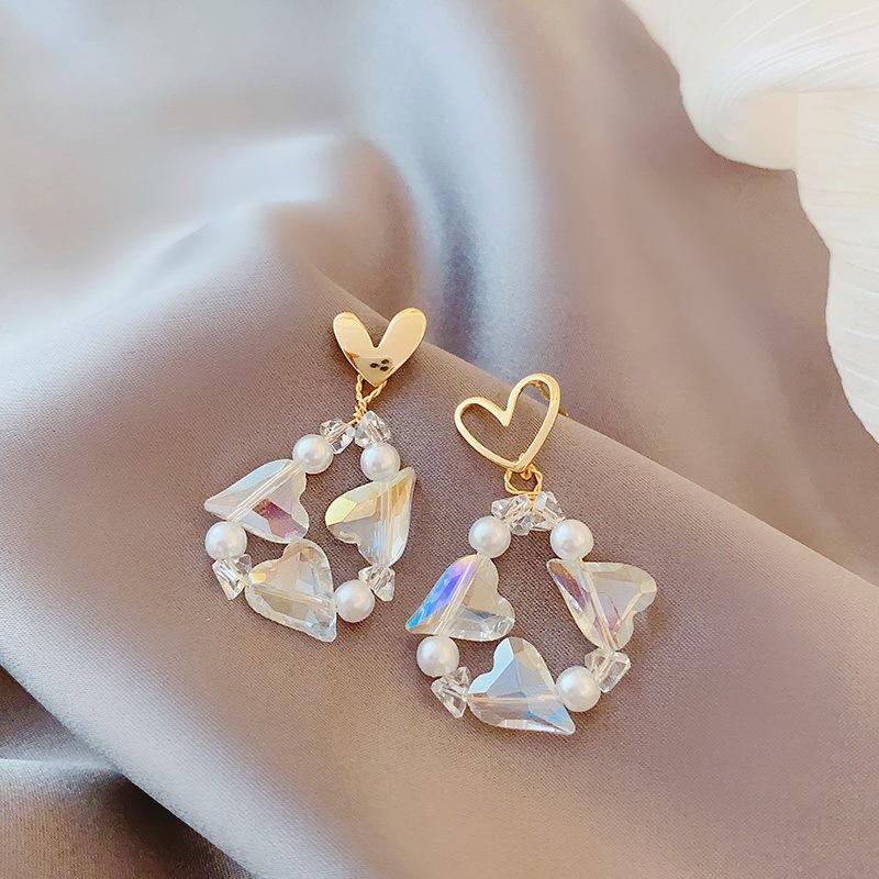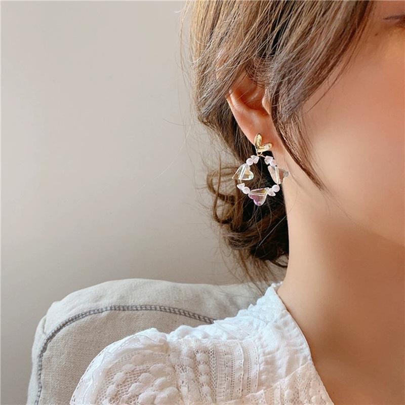 Brincos de contas de amor assimétricos para mulheres, estilo francês suave, brincos frescos e doces, brincos para jovens no verão, atacado