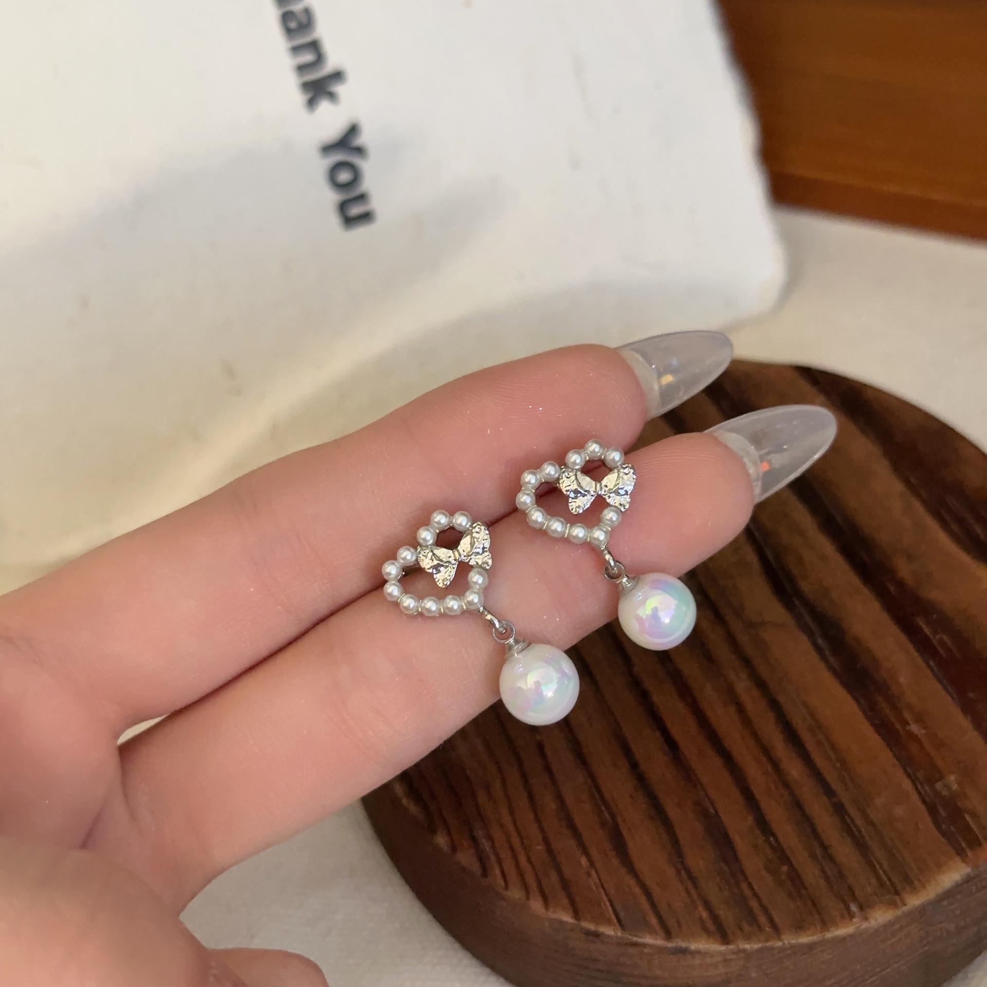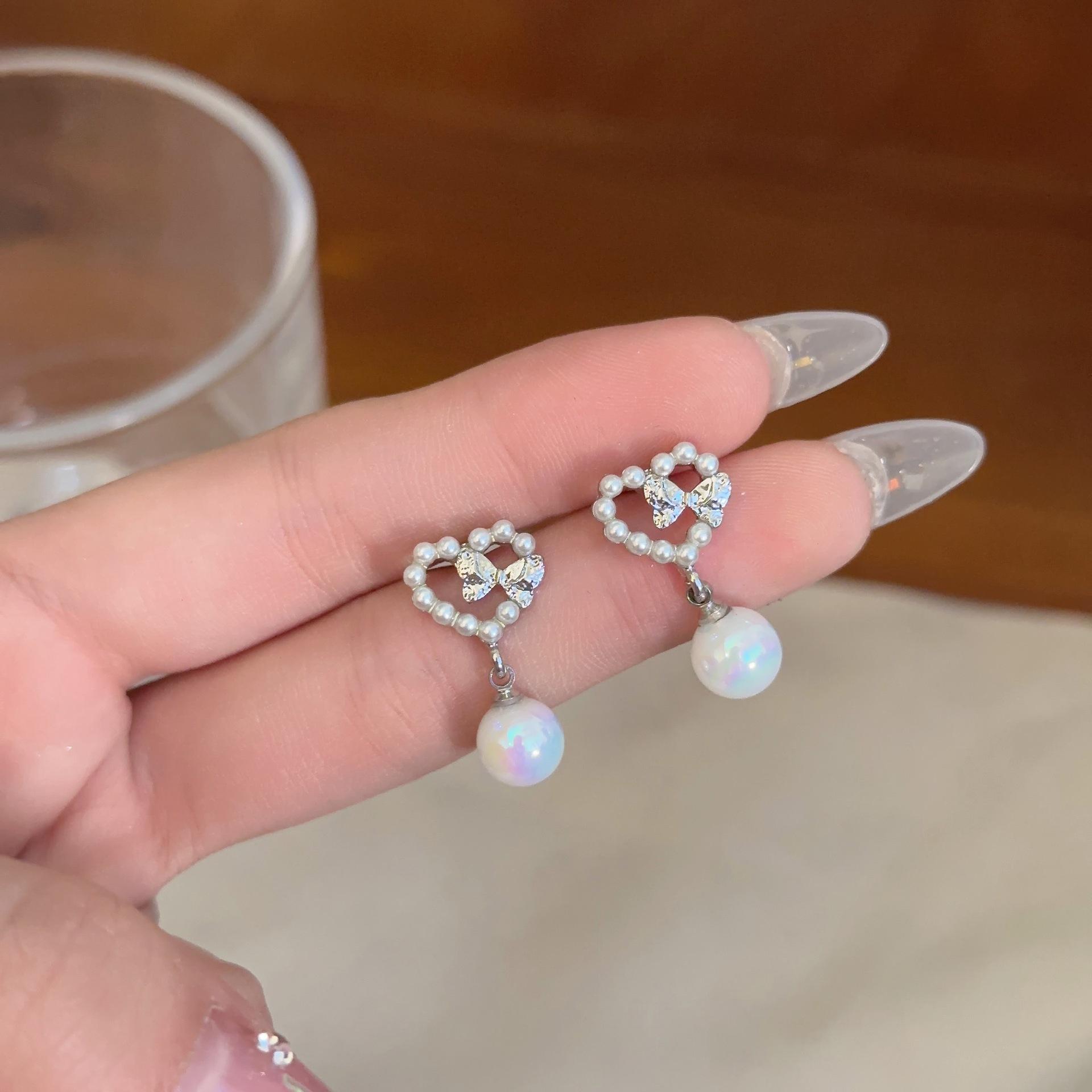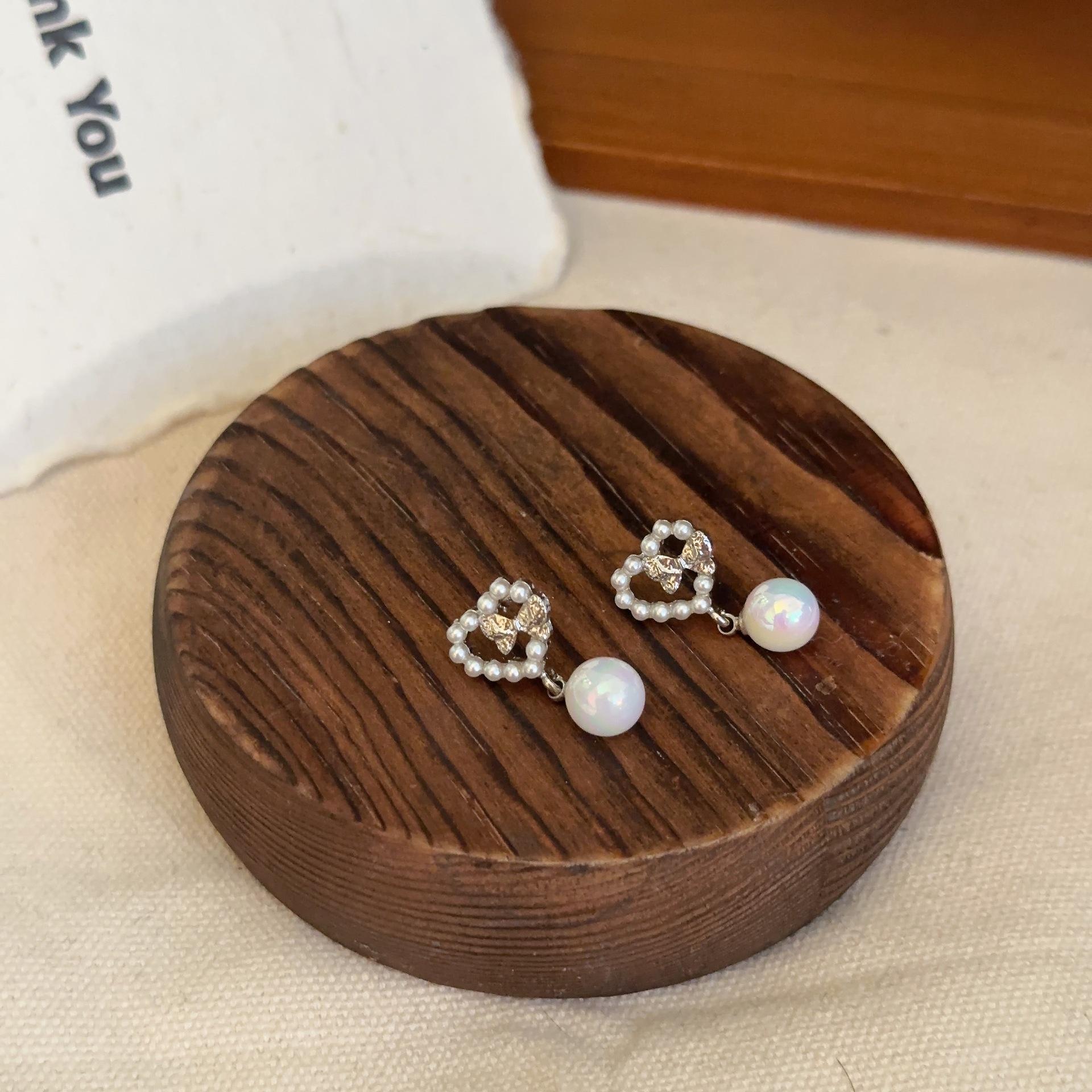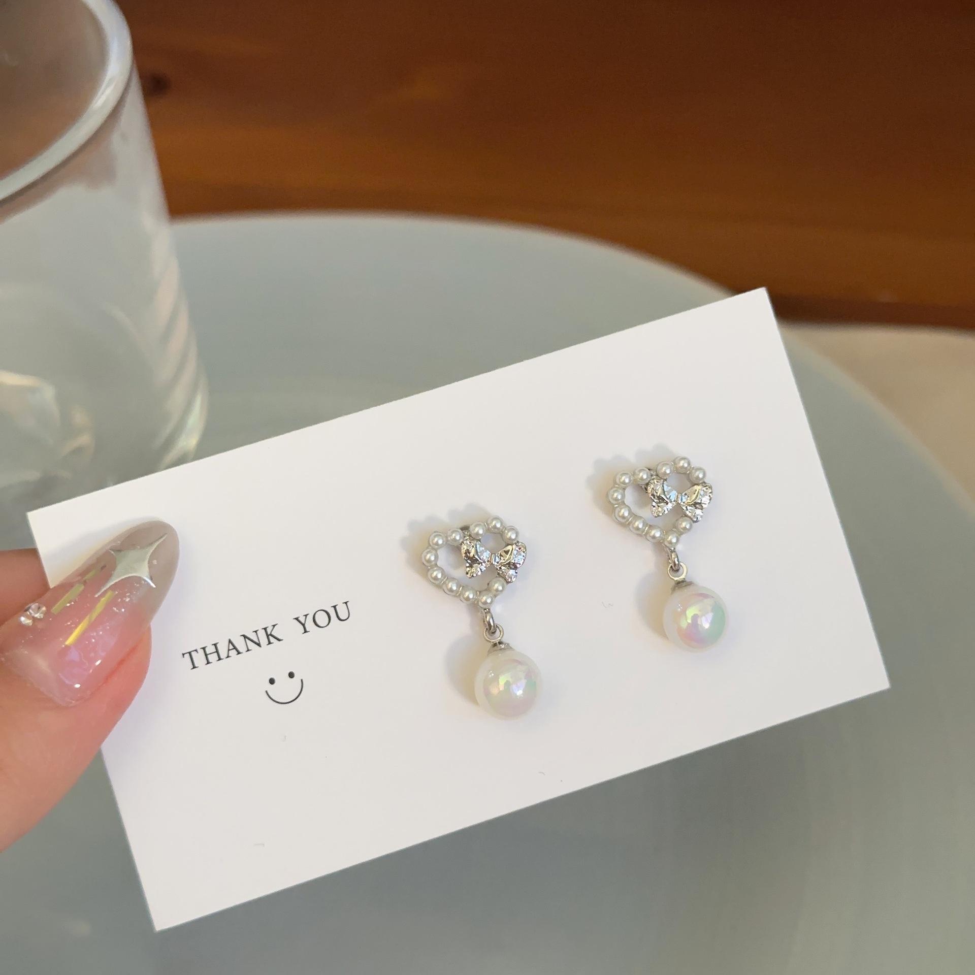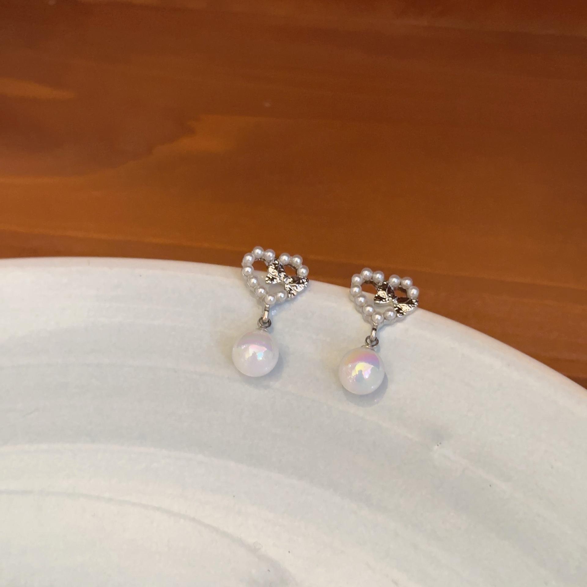 Pendientes de plata S925 con forma de aguja de Corea del Sur, con perlas de amor, diseño de nicho para mujer, de alta gama, con clip, elegantes y exquisitos.