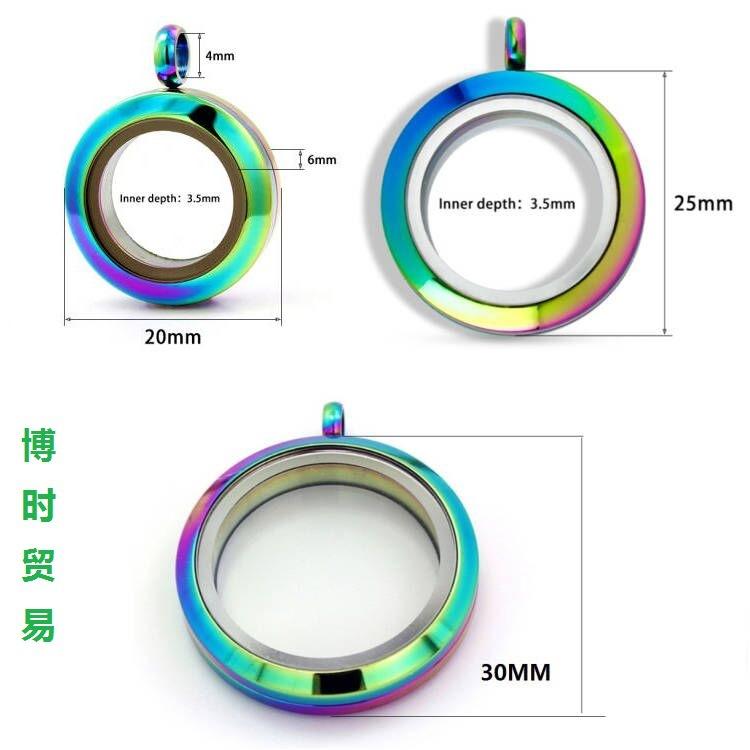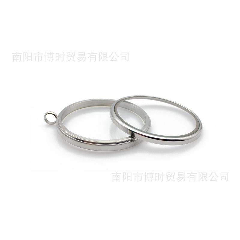 Aço inoxidável europeu e americano cor de aço duplo curvo orelha dupla caixa de cinábrio caixa gawu caixa de foto de vidro redondo pingente pulseira