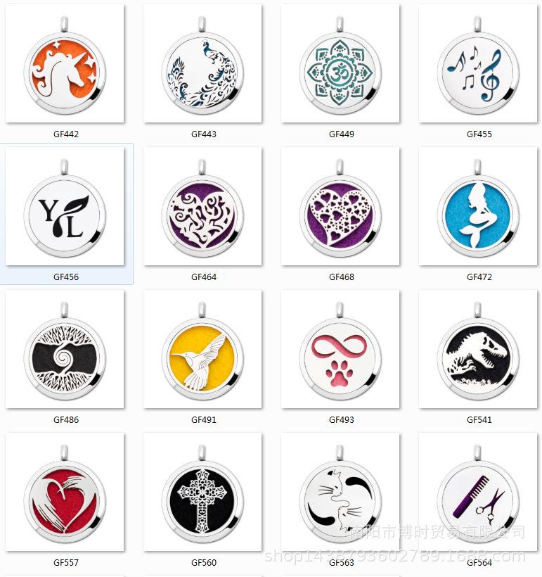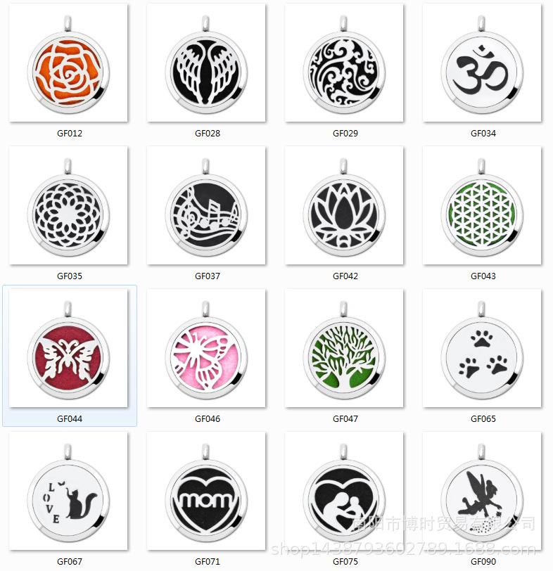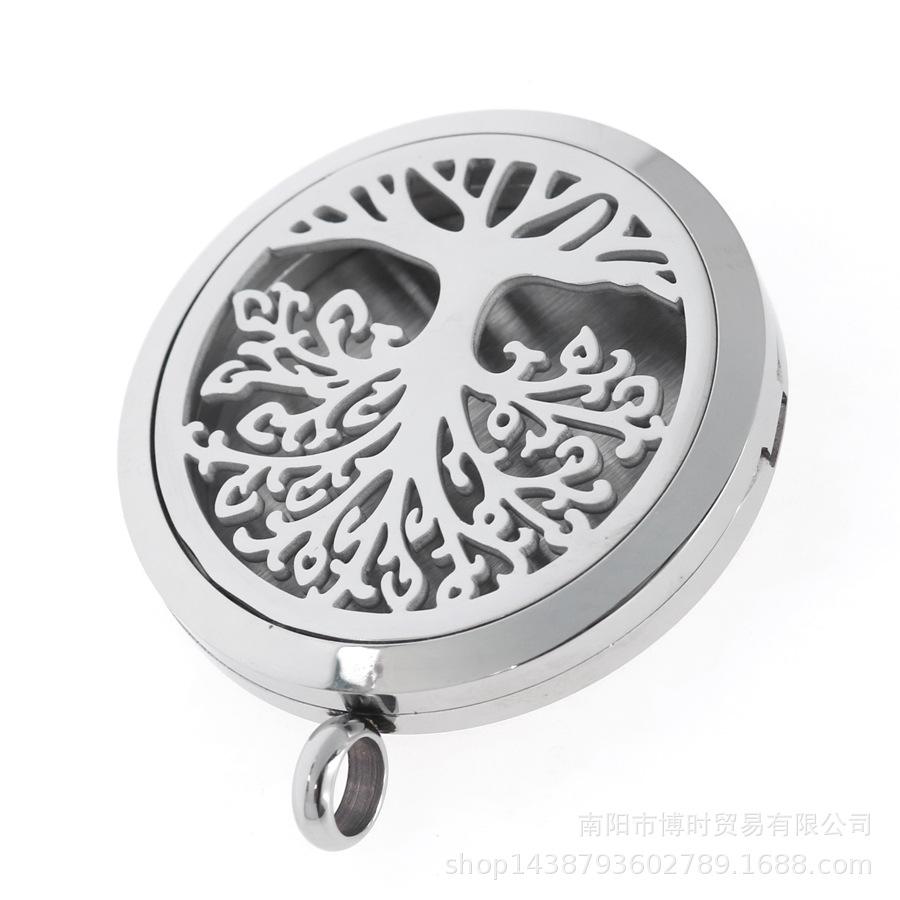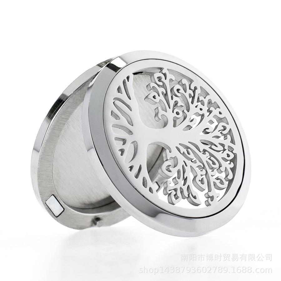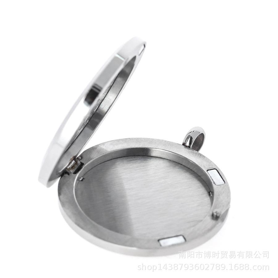 Detalhe da caixa de aromaterapia com pingente magnético brilhante de aço inoxidável de 35 mm:
