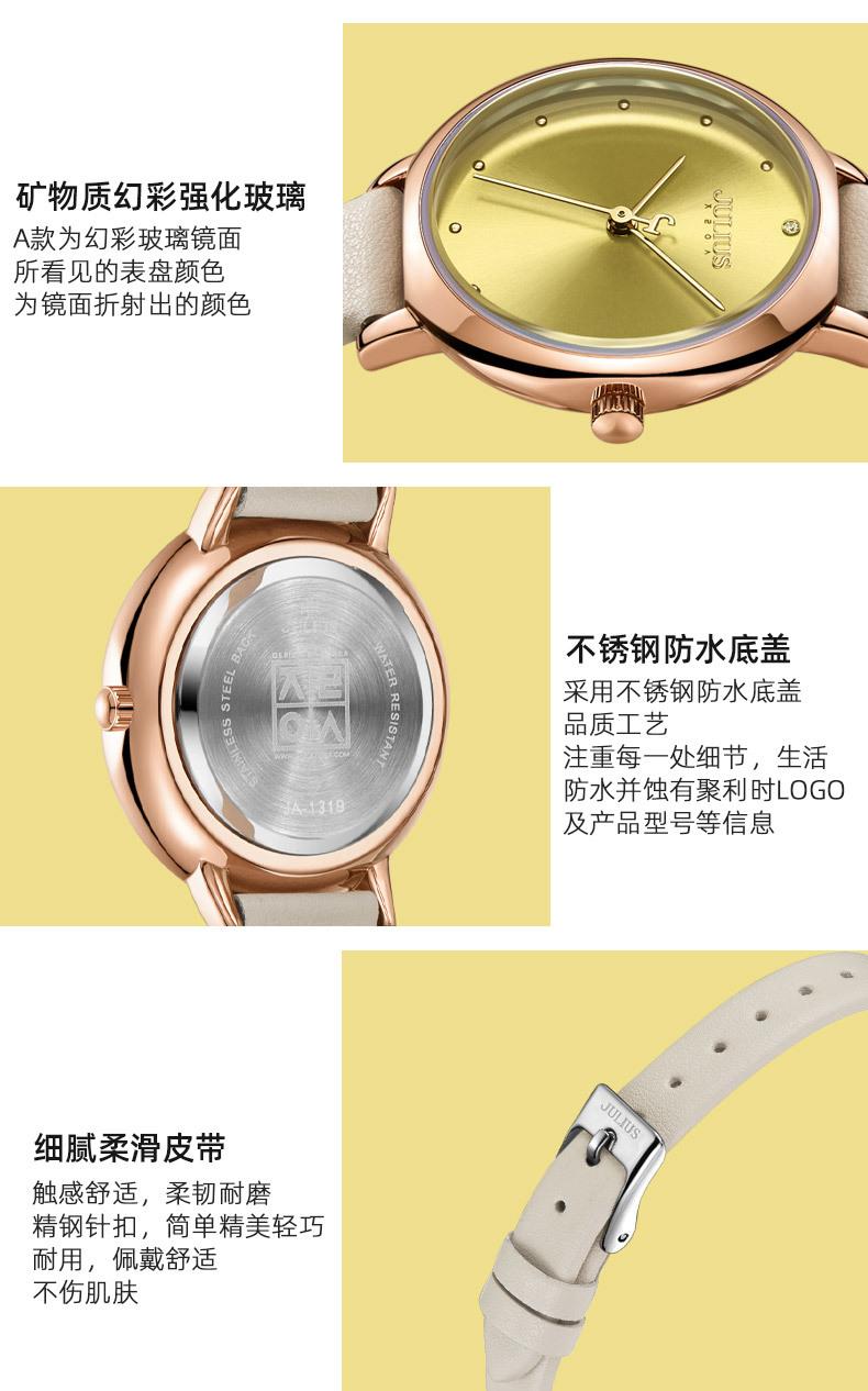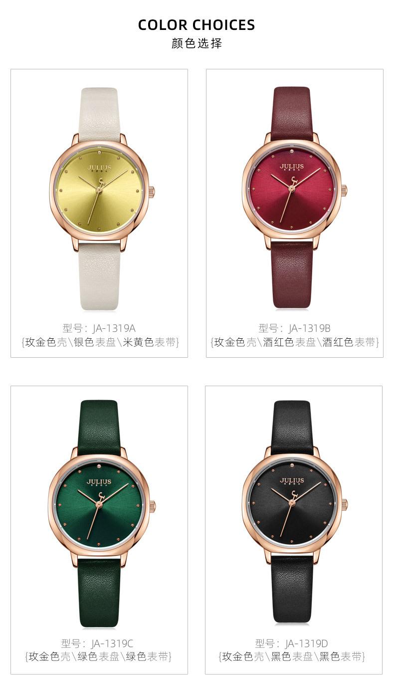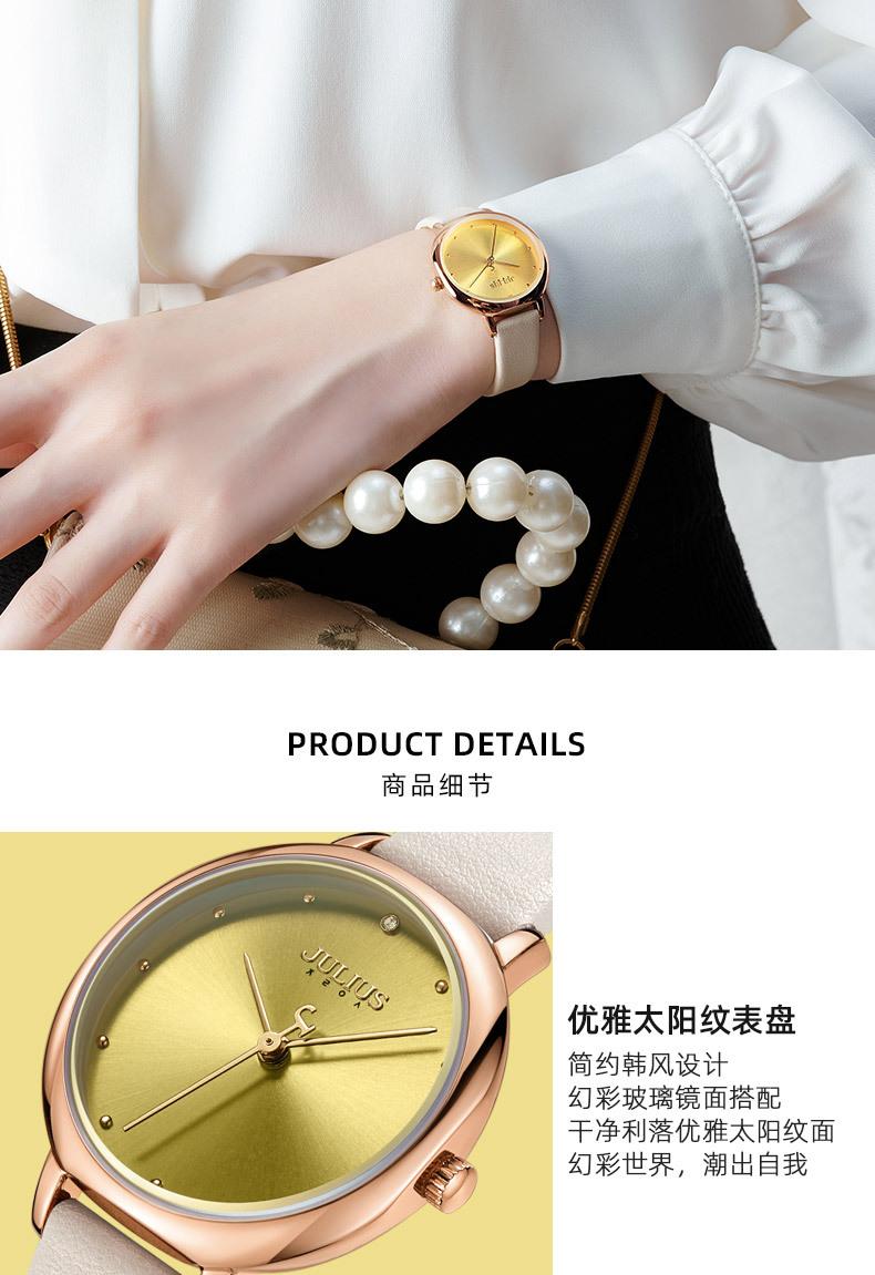 El significado de la marca JULIUS es alegre, único, amoroso, ideal, inusual y brillante. Es un reloj único que te enamorará a primera vista (Just You Will Love, un reloj único y especial). JULIUS toma este nombre y cuenta con siete series principales: Serie Clásica, Serie Emocionante, Serie Brazalete, Serie Exploración, Serie Pareja, Serie Hombre y Serie Edición Limitada.