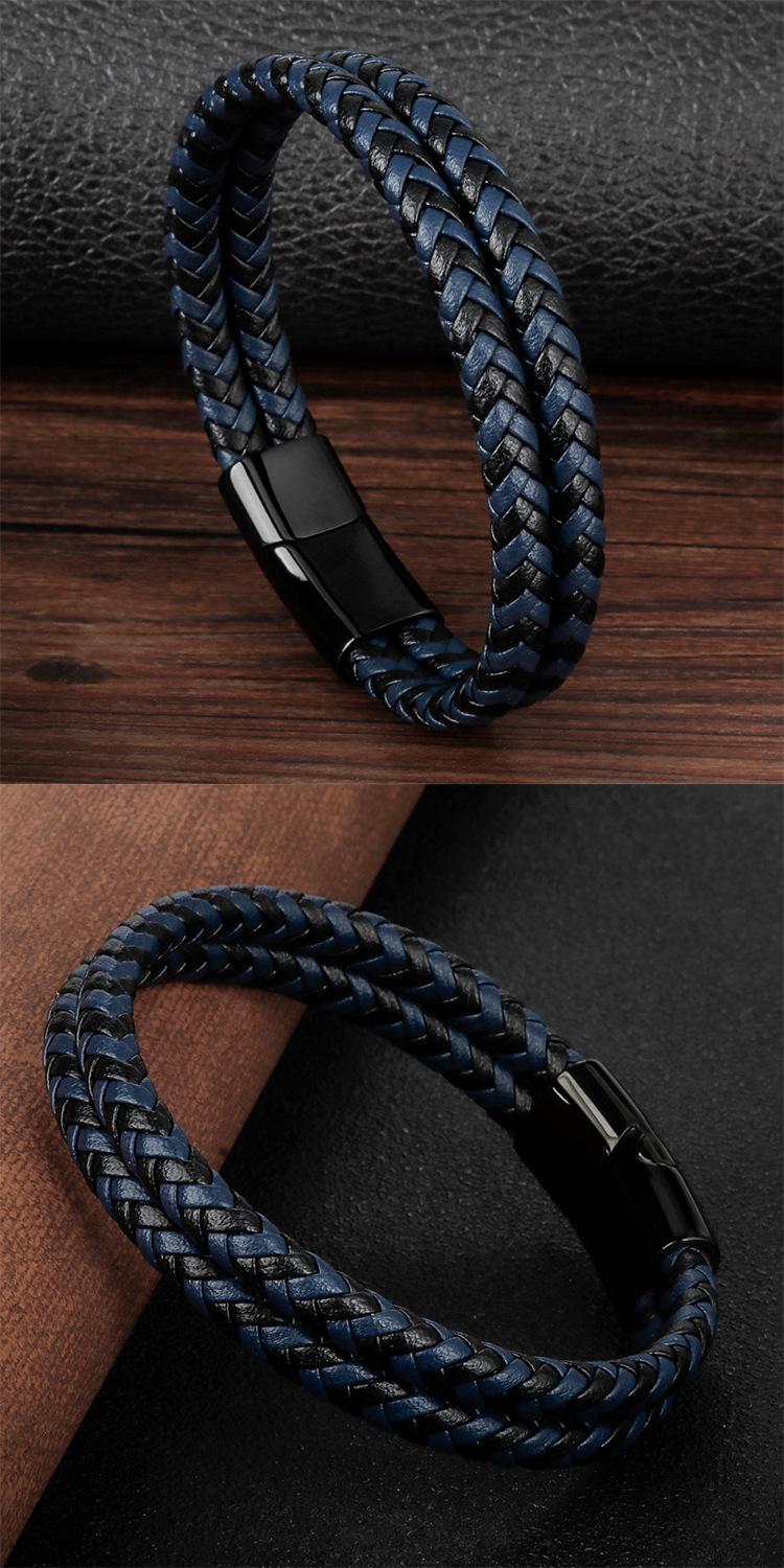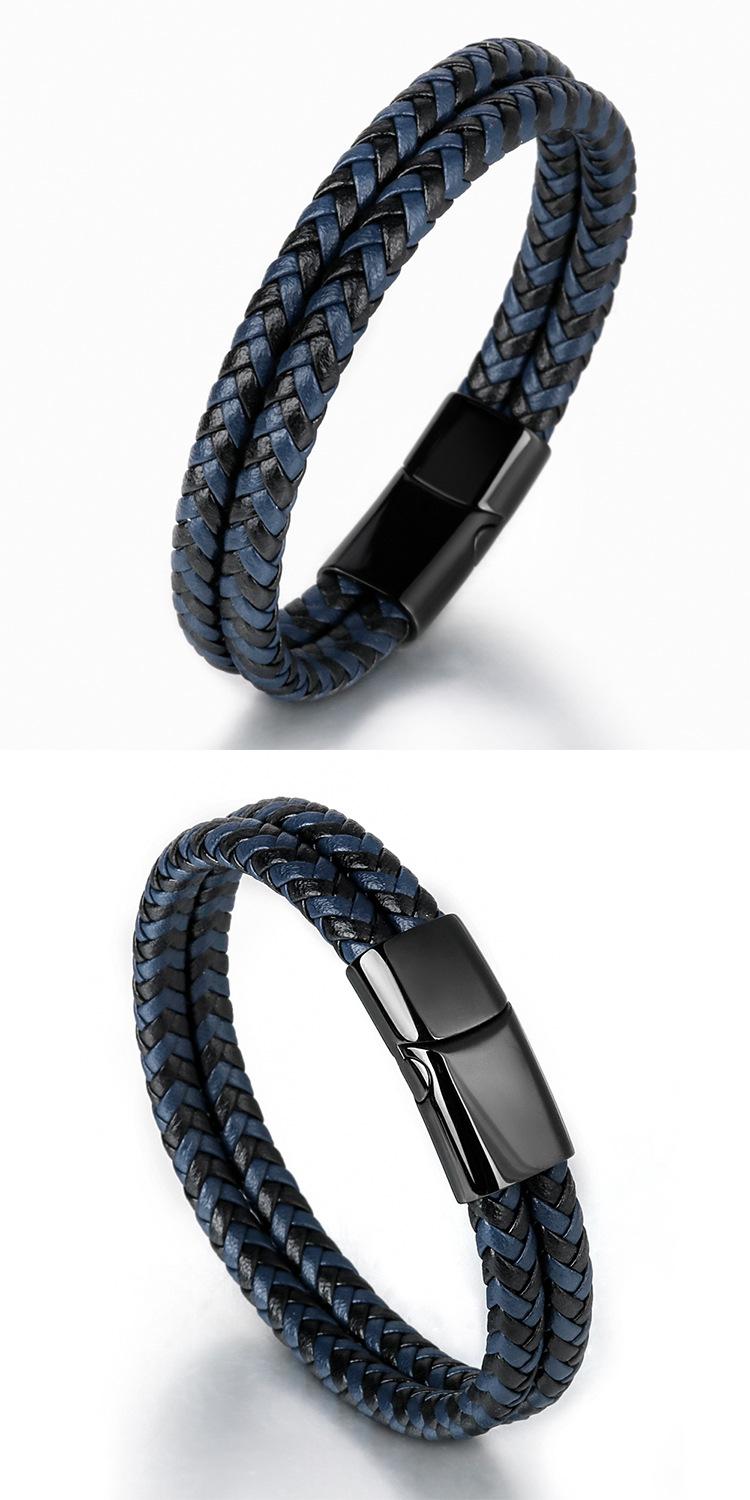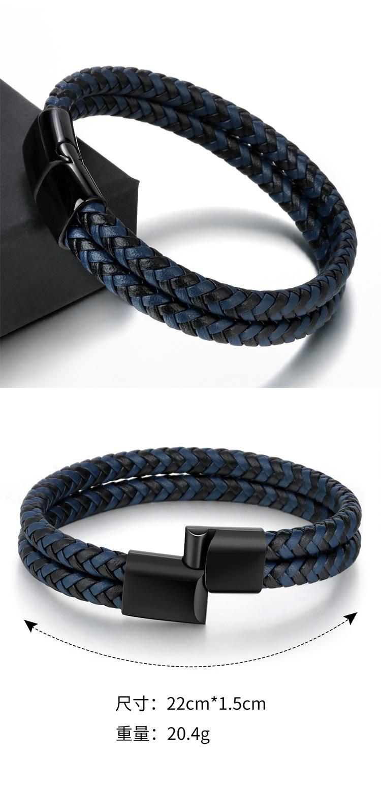 Pulseiras de couro e aço inoxidável tecidas à mão da Amazon, pulseiras masculinas de aço de titânio, joias no atacado |